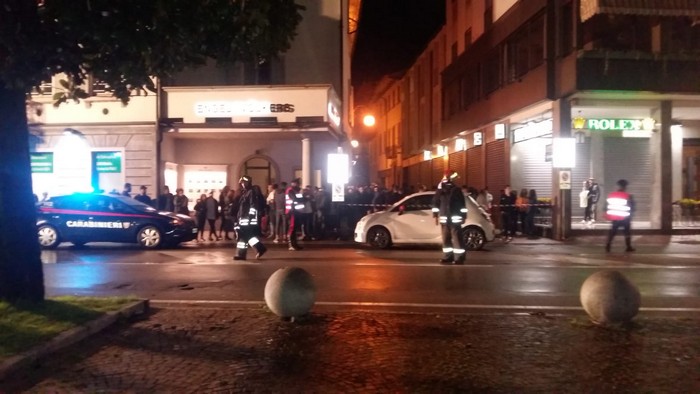 mentre attraversavano la strada. Sono due giovani i feriti dell’incidente stradale accaduto poco prima della mezzanotte sulla statale del Lago Maggiore. Una Fiat 500 Abarth con al volante una giovane –a suo fianco una coetanea– che percorreva corso Mameli, all’altezza delle strisce pedonali fronteggianti l’hotel Miralago (poco prima dell’incrocio con via De Bonis) ha urtato i due pedoni che stavano attraversando. Il veicolo s’è fermato pochi metri più avanti. I feriti sono stati prelevati da due ambulanze del 118, che li hanno portati al Dea dell’ospedale “Castelli” in codice giallo. Uno è più grave dell’altro ma nessuno è in pericolo di vita. Il sinistro è stato rilevato dai carabinieri, intervenuti insieme ai vigili del fuoco.