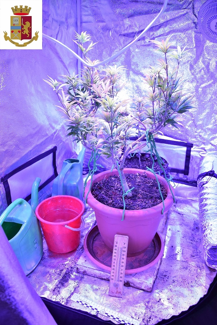 di marijuana, con serre a cabina collegate a ventilatori, lampade e il necessario per far crescere le piantine. Tutto a casa della nonna, nell’appartamento sotto il suo. Ha 25 anni il verbanese denunciato l’altro ieri dalla polizia per la coltivazione degli stupefacenti. Gli agenti l’hanno scoperto per caso, dopo essere intervenuti per una lite in atto in un condominio. Chiamati da un vicino, i poliziotti della Volante sono saliti al piano in cui era stato segnalato il dissidio. Si sono trovati di fronte a una porta con serratura a impronta digitale, una videocamera di sicurezza e un allarme acustico: sistemi sofisticati che adotta chi vuole molta riservatezza. Inizialmente l’inquilino non ha risposto allo squillo di campanello degli agenti. Quando ha aperto la porta e s’è visto di fronte due uomini in divisa, ha cercato di rientrare, chiudendoli fuori. I poliziotti, che hanno subito avvertito un forte odore di marijuana, sono entrati nell’appartamento scoprendo una sorta di laboratorio con infiorescenze di marijuana (0,336 grammi), un vaso con materiale vegetale triturato, pacchetti di semi, grinder e bilancino di precisione. Alla richiesta di spiegare la provenienza di quelle sostanze, il 25enne ha accompagnato i poliziotti al piano di sotto, nell’appartamento intestato alla nonna, dove si trovava il “reparto produzione”, fatto di cabine a cerniera con i lati forati areati da macchinari studiati per garantire la giusta crescita delle piantine. Il giovane, che è incensurato, è stato denunciato.