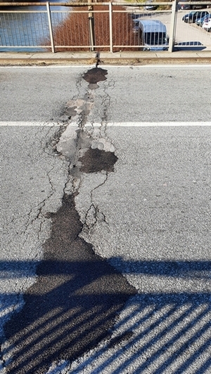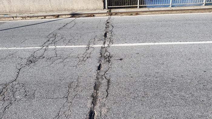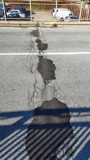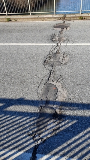 Protestano i lavoratori frontalieri che quotidianamente percorrono la statale 34 del Lago Maggiore per recarsi in Svizzera. E che, nonostante i problemi più seri si verifichino nel tratto nord dell’arteria internazionale (da Ghiffa a Cannobio), affidano ai social network -al gruppo Facebook Frontalieri Vco- il loro disappunto per le condizioni dell’asfalto a Intra. Il tratto “incriminato” è all’uscita della città, tra corso Mameli e via Ticino. E se su quest’ultima è datato l’”affossamento” di un pezzo di carreggiata sotto Villa Poss, tra la Canottieri Intra e il Sasso (degli annunciati lavori non si sa nulla da mesi), le piogge intense della scorsa settimana hanno portato d’attualità lo stato della strada davanti al benzinaio Agip e, soprattutto, del ponte sul torrente San Giovanni. Quest’ultimo, rattoppato di recente con interventi a spot, è davvero in precarie condizioni, sia lungo i quattro giunti di dilatazione (si guardino le foto), sia in corrispondenza del selciato pedonale, che presenta almeno una mezza dozzina di buchi, pericolosi per il rischio di inciampare.