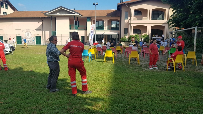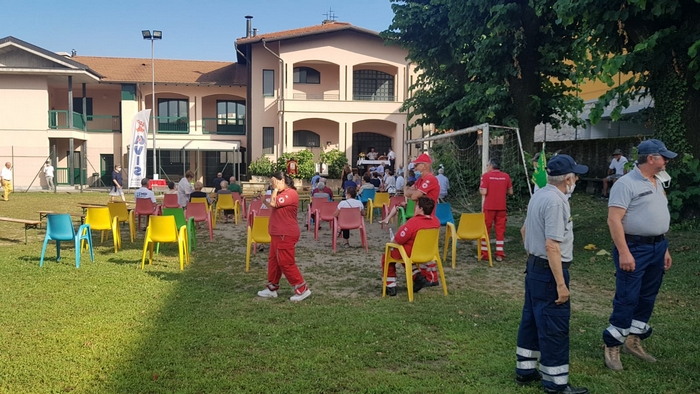 È stata una cerimonia intensa, sentita e anche emozionante quella che ieri la comunità di Stresa ha tenuto all’oratorio. Don Gianluca Villa ha voluto idealmente chiudere la gestione più drammatica dell’emergenza Covid-19, che da marzo a maggio ha provato anche gli stresiani, con una messa a suffragio delle vittime del coronavirus. Celebrata all’aperto, nel campetto parrocchiale, ha permesso di mantenere quel distanziamento sociale fisico che è l’opposto del sentimento di comunanza che ha unito nelle settimane del lockdown, anche grazie alla presenza del volontariato. Alla messa erano presenti l’Amministrazione comunale e tutte le associazioni cittadine: protezione civile, vigili del fuoco, Croce Rossa, Avis, Alpini, il coro Motta Rossa e il Cantante della solidarietà.