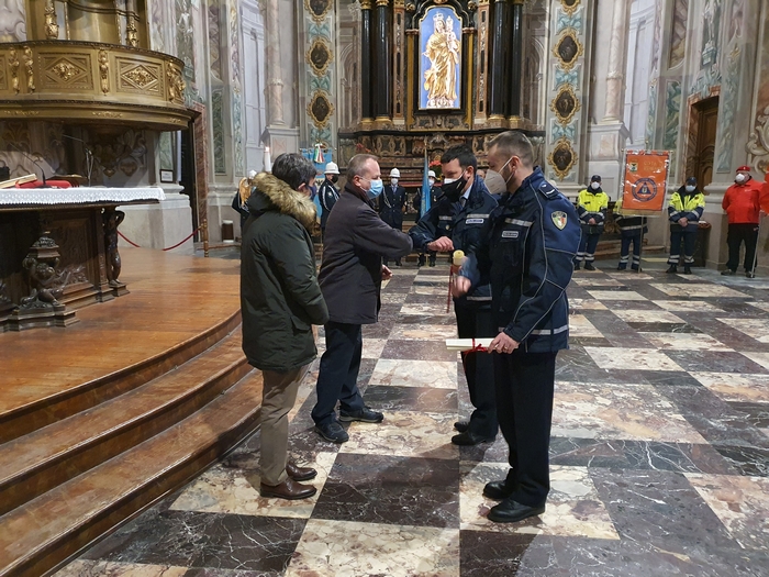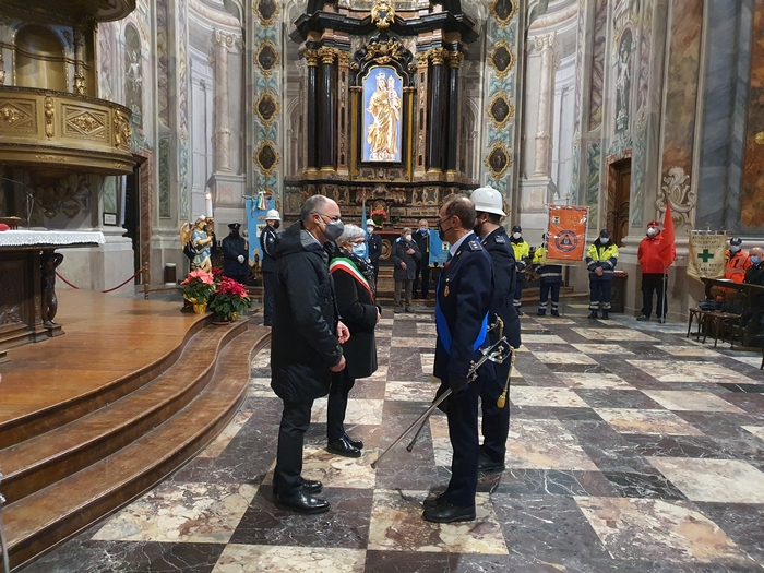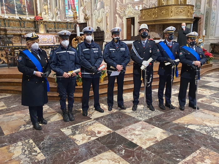 VERBANIA – 20-01-2021 -- Una celebrazione sobria, con pochi invitati -giusto le autorità e pochi altri- nel pieno rispetto delle norme di contenimento della pandemia di Covid-19 e che ha reso omaggio al personale distintosi in servizio. Oggi, festa di San Sebastiano patrono della polizia municipale, i vigili di Verbania si sono ritrovati per la celebrazione tenutasi nella basilica di San Vittore. Erano presenti anche i colleghi di Gravellona Toce e i massimi rappresentanti istituzionali: prefetto, questore, comandanti provinciali di carabinieri, Guardia di finanza e vigili del fuoco, vicesindaco e assessore, consigliere provinciale delegato.
