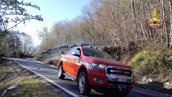 LESA -04-04-2021 -- Dalle 15 circa del giorno di Pasqua, una squadra dei vigili del fuoco di Arona è stata impegnata in un incendio di un bosco sulle pendici del Vergante tra le province di Novara e VCO. la zona interessata dalle fiamme è quella fra Lesa e Carpugnino. Sul posto sono intervenute anche squadre Aib ed un elicottero Eriksson. L'intervento era ancora in corso in serata.