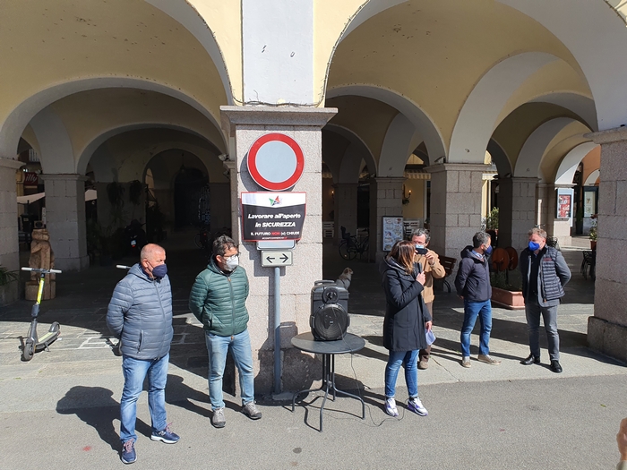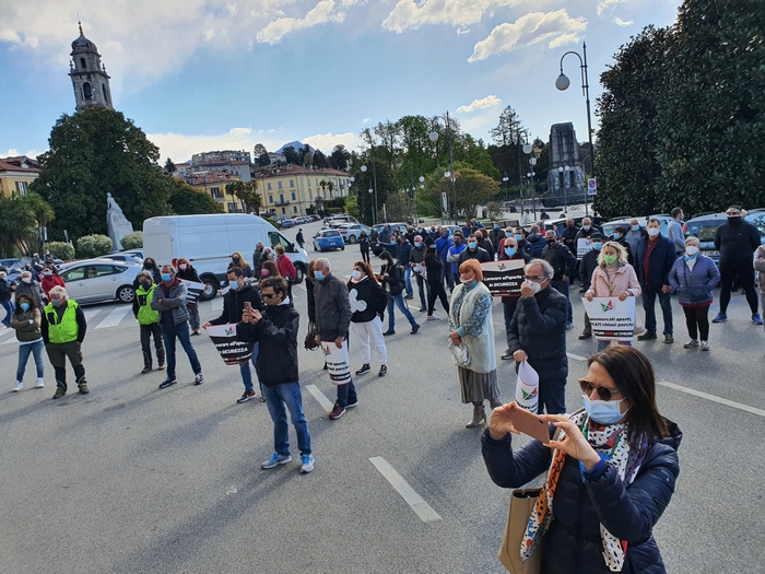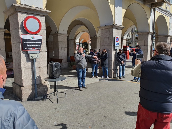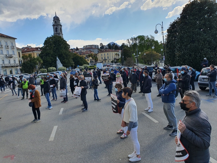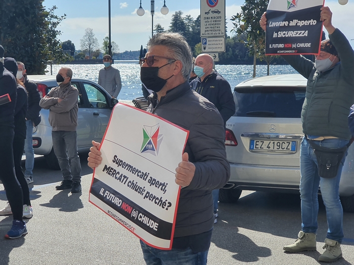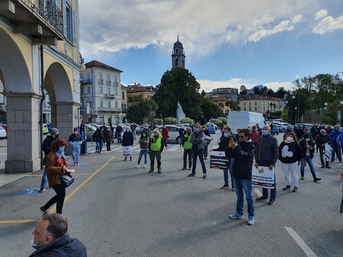VERBANIA - 08-04-2021 -- Stanchi, delusi e arrabbiati. È quasi un mese, da quando il Piemonte è in zona rossa (e lo sarà almeno sino al 30 aprile, secondo l’ultima ordinanza firmata l’altro ieri a Torino), che gli ambulanti sono a casa. I furgoni sono in garage, la merce in deposito, le casse piangono e non c’è una seria prospettiva di ripresa, né regole chiare per tutti. È sfogando tutta la propria frustrazione che, ieri mattina, la categoria s’è ritrovata in piazza. A Pallanza, davanti alla sede del Palazzo di Città, la Fiva -l’associazione di categoria che li rappresenta- erano in tanti a manifestare contro le chiusure indiscriminate. Chiedono alle autorità di poter tornare a lavorare, quantomeno come i colleghi dei negozi. I vari Dpcm, decreti legge e ordinanze anti-Covid-19, infatti, applicano restrizioni più ampie per il commercio su strada che, per definizione, avviene in un luogo all’aperto nel quale il rischio di contagio è molto più basso che all’interno di un negozio. Eppure le uniche attività ammesse sono quelle alimentari, mentre sono aperti i negozi di articoli sportivi, di intimo e quelli che vendono abbigliamento per bambini.