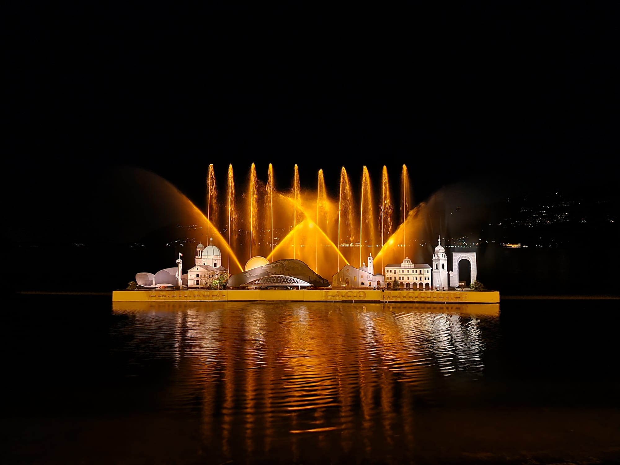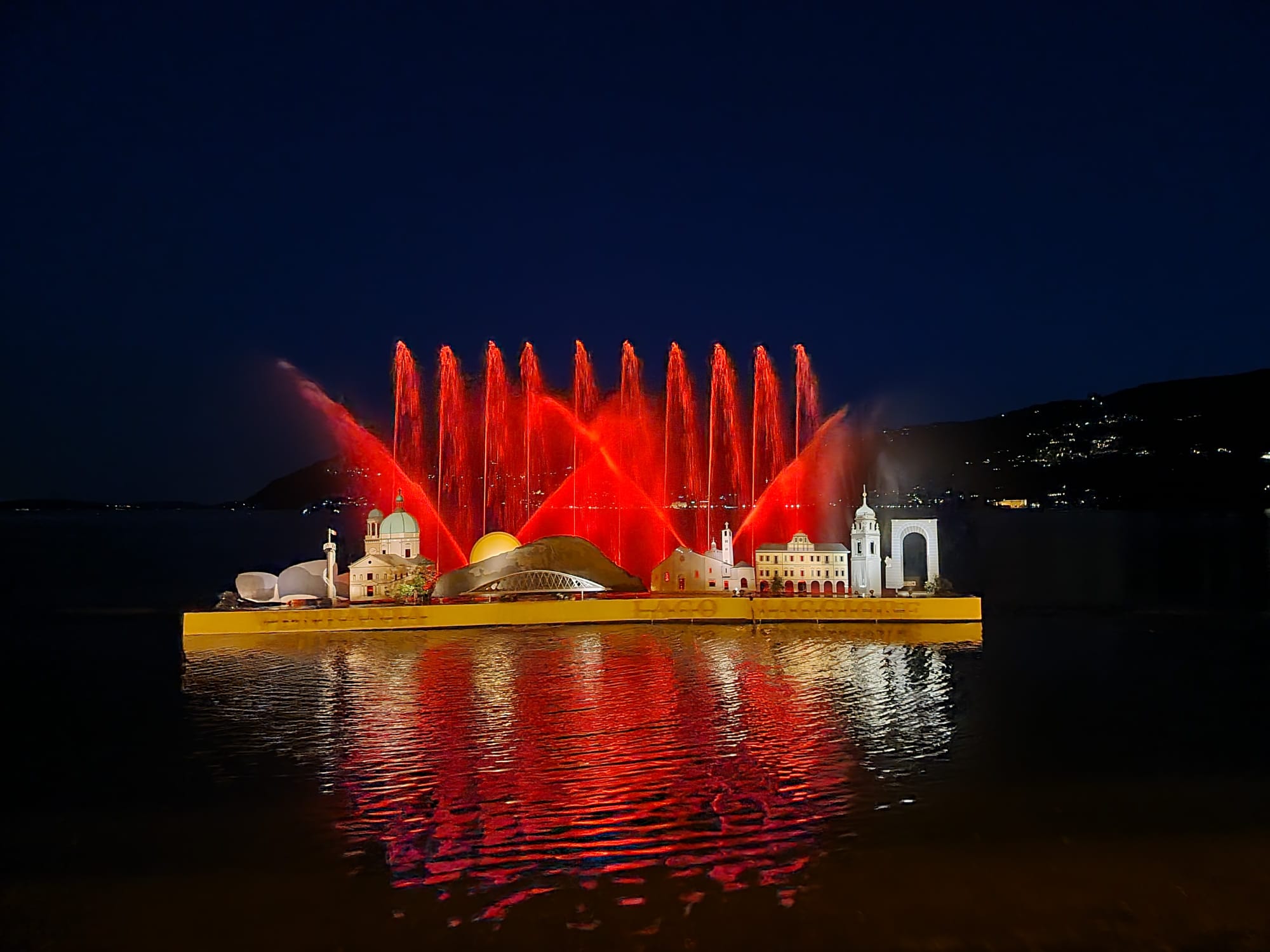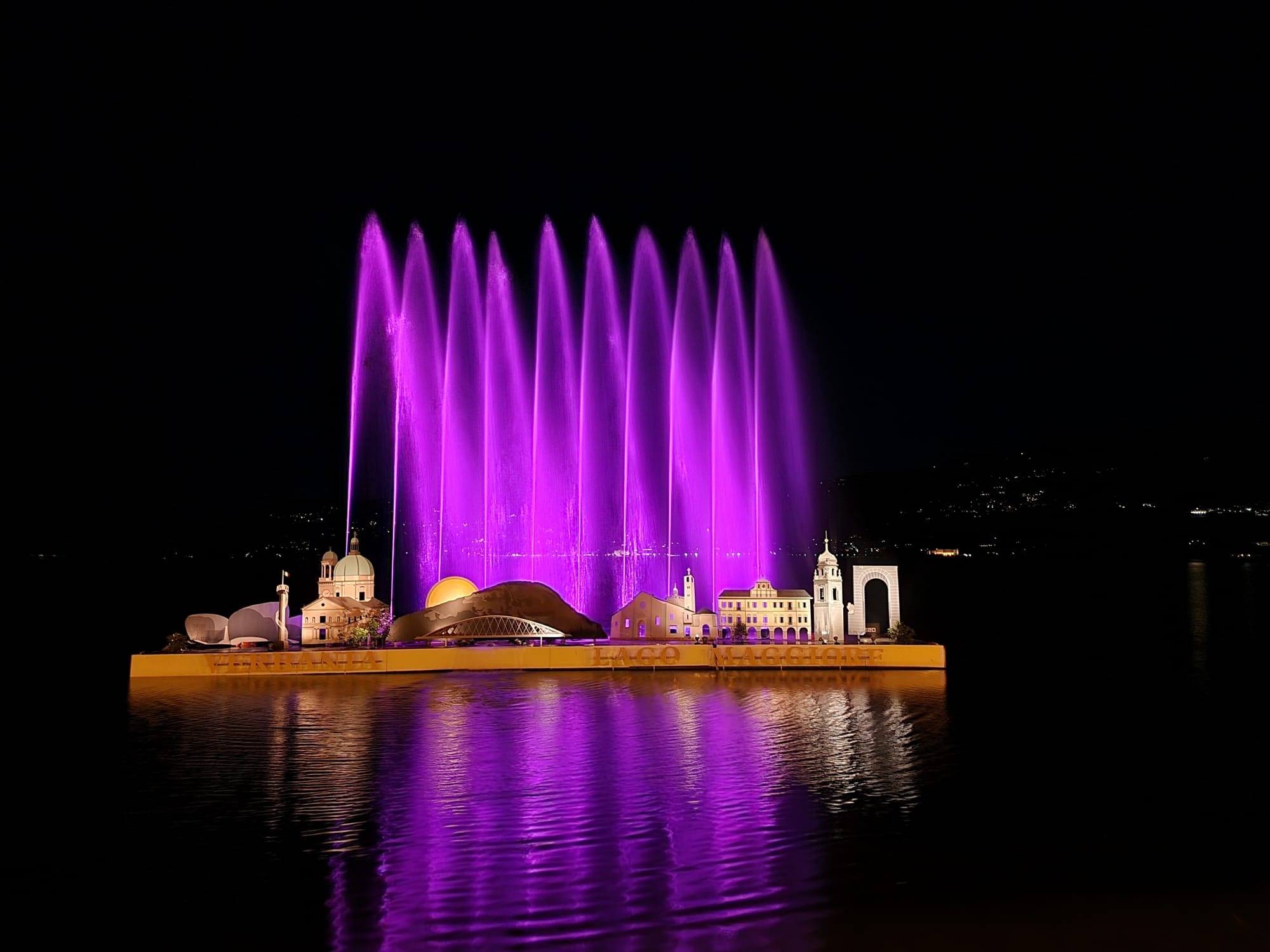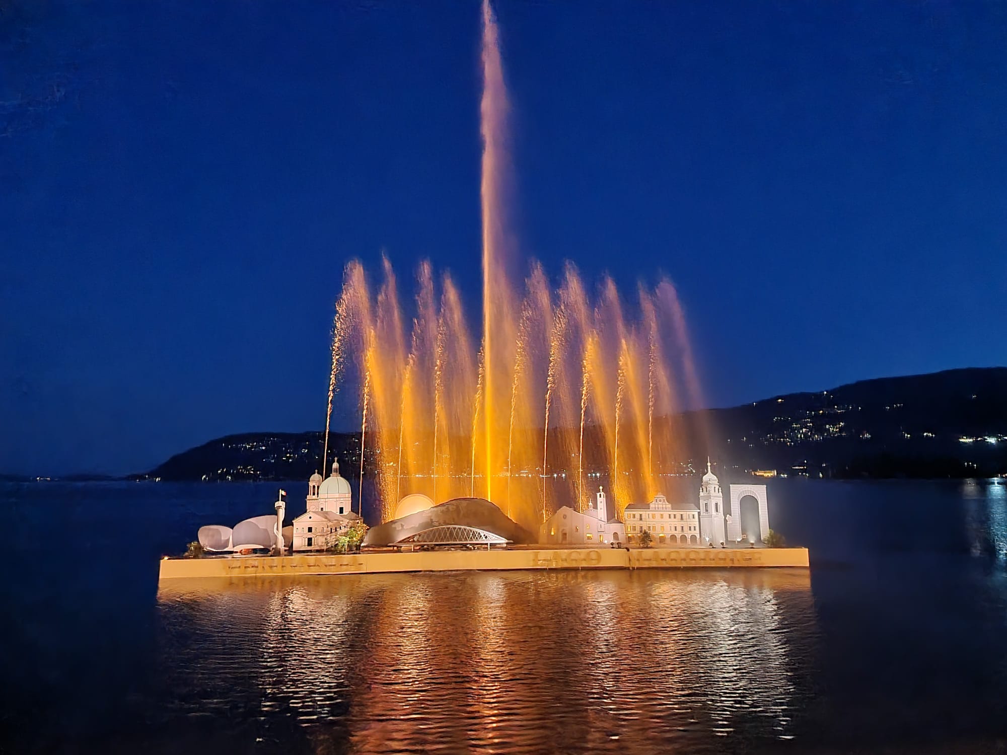 VERBANIA - 28-05-2021 -- Un getto tricolore accompagnato dalle note dell’Inno di Mameli. c’è stato anche un momento di raccoglimento per ricordare la tragedia avvenuta domenica al Mottarone nell’evento che l’Amministrazione verbanese ha tenuto ieri sera in piazza Garibaldi, a Pallanza. Col calare delle tenebre il sindaco Silvia Marchionini, parte della sua giunta, il prefetto e i rappresentanti delle forze dell’ordine hanno partecipato alla sobria cerimonia che ha inaugurato la fontana galleggiante allestita davanti alla passeggiata di corso Garibaldi, che manda al cielo gli zampilli di 15 augelli, colorati da lampade a led. E' anche l'accoglienza al Giro d’Italia che domani sarà in città, ma anche una sorta di apertura della stagione turistica. Nel corso della serata è stato presentato anche il libro “Quando il Giro” scritto da Gianluca Trentini.