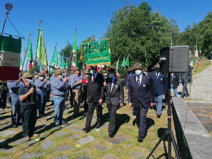 MIAZZINA - 14-06-2021 -- S’è rinnovata ieri, anche nell’anno della pandemia, la tradizionale cerimonia di ricordo delle Penne nere del Battaglione Intra cadute nelle due guerre mondiali e nella campagna d’Africa. Al memoriale costruito nel 1965 alla Colletta dell’Alpe Pala, nel territorio di Miazzina, autorità ed ex alpini si sono radunati per la messa celebrata dal parroco di Cannobio don Mauro Caglio e per l’omaggio ai caduti. Presenti il parlamentare Mirella Cristina, il vicepresidente della Provincia Rino Porini, e numerosi sindaci del Verbano.