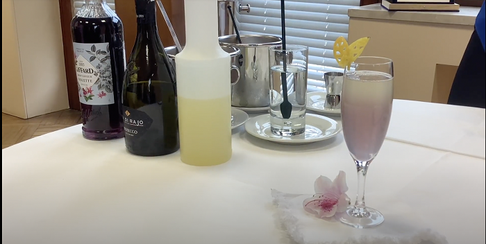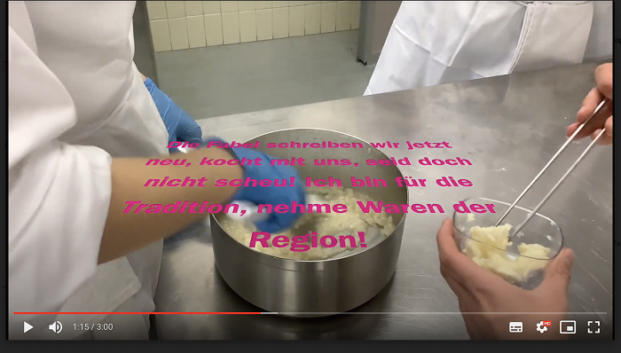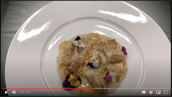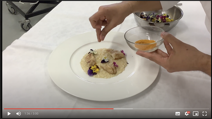 La giuria - composta da Goethe-Institut, Slow Food, Ambasciatori del Gusto e l’azienda Bosch – ha scelto il progetto dei ragazzi e ragazze di Stresa, che per il video hanno preparato un piatto che unisce tradizione e modernità, sfruttando gli ingredienti del territorio, abbinandolo inoltre a un cocktail, invece che a un vino, come si fa di consueto. Il risotto creato per l’occasione è cucinato con ingredienti del territorio (riso, pesce persico, nocciole, fiori eduli), mentre il cocktail, battezzato Lila Licht (luce viola), è a base di sweet and sour, sciroppo di viole e prosecco extradry, servito in un flute con una piccola decorazione floreale.