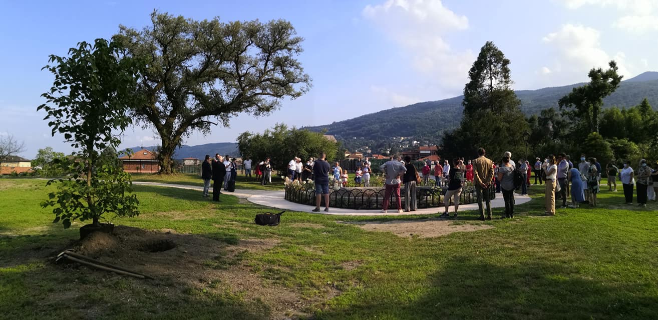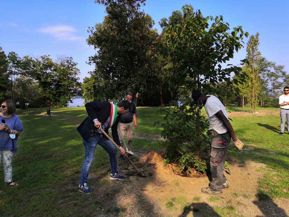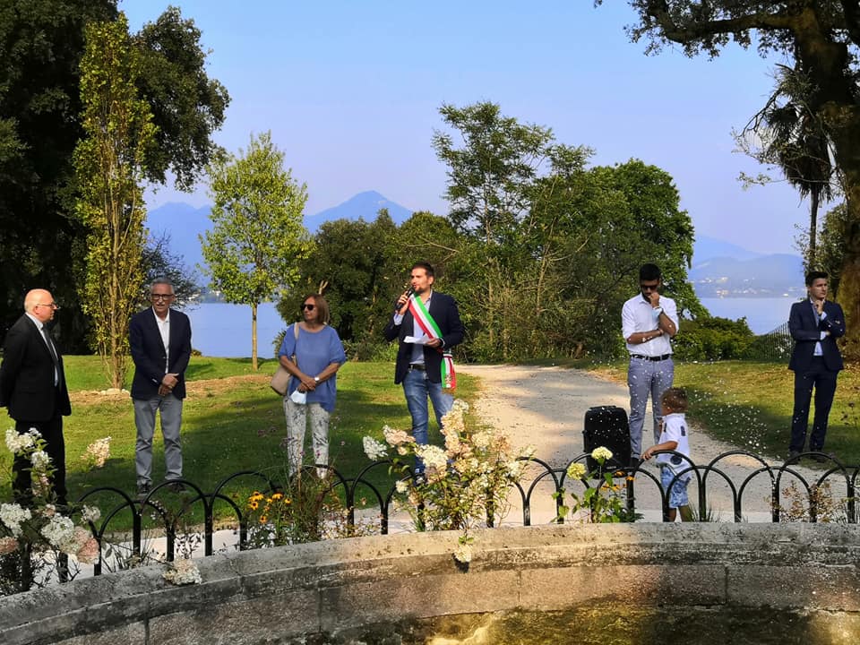BAVENO - 23-07-2021 - Una "divida involucrata", meglio noto come l'albero dei fazzoletti è la pianta che nel cuore di Villa Fedora, a Baveno, ricorda, le vittime del Covid. A piantarla in un gesto simbolico carico d'emozione, il sindaco Alessandro Monti nel corso della cerimonia che, nella serata di ieri, ha inaugurato i lavori di restyling del parco. Parco che nell'agosto del 2019 era stato devastato da una tromba d'aria.