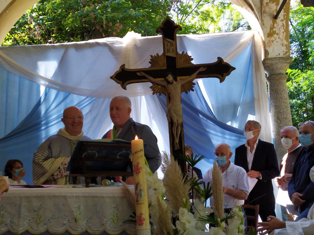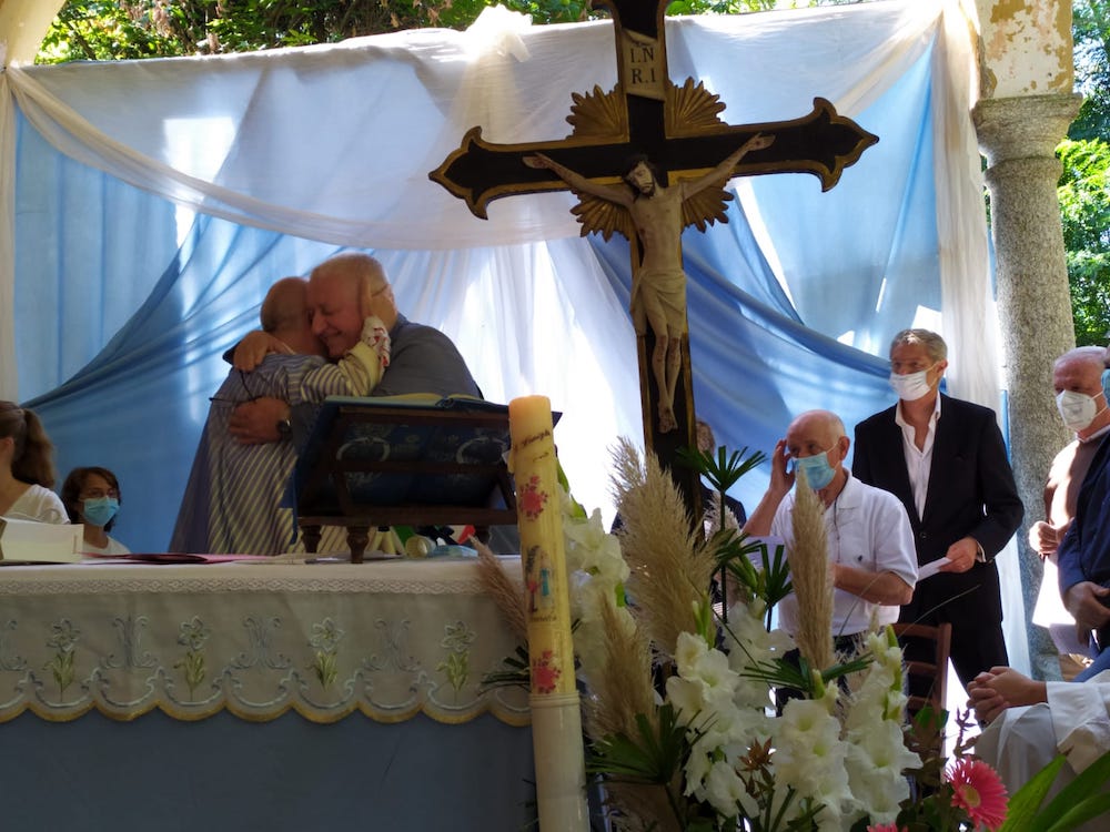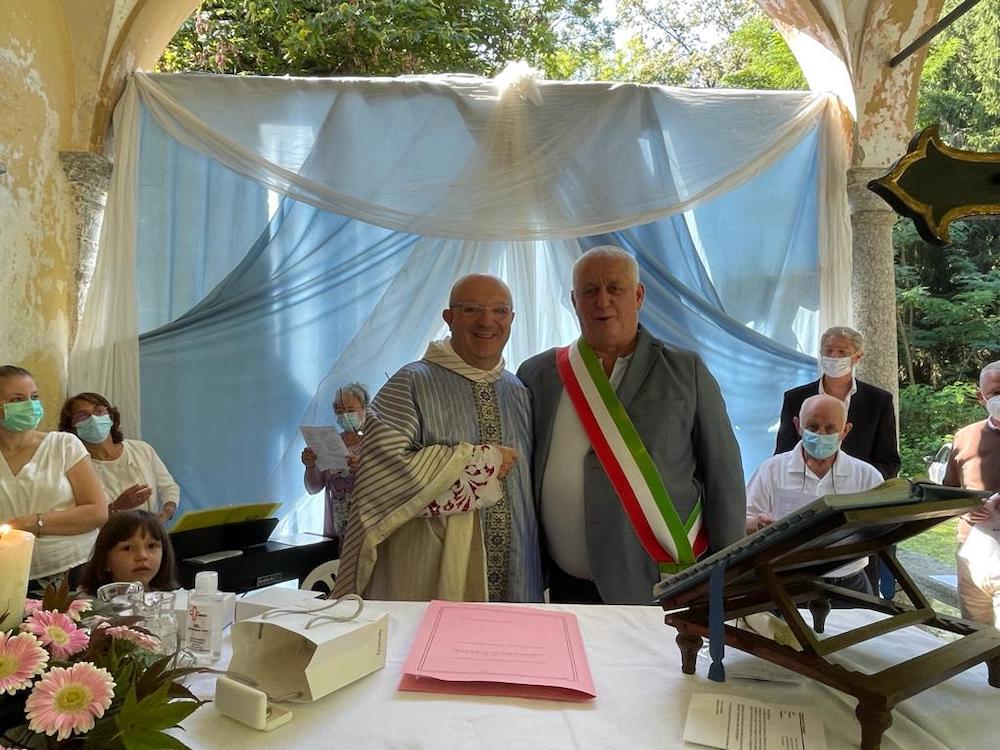 COSSOGNO - 06-09-2021 - Col saluto a don Adriano Micotti, che svolgerà la funzione sacerdotale a Romentino, la comunità di Cossogno s'è ritrovata all'oratorio di Inoca per una domenica che, assieme al parroco, ha celebrato più generazioni di cossognesi. Don Adriano ha voluto rispondere all'affetto dimostratogli con un sentito ricordo degli anni trascorsi nel paese della valle Intrasca. Per l'occasione durante la funzione sono stati consegnati gli attestati alle coppie che hanno celebrato 50 anni (e oltre) di matrimonio, premiazione che non si è potuta celebrare l’anno scorso a causa della pandemia.