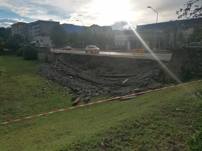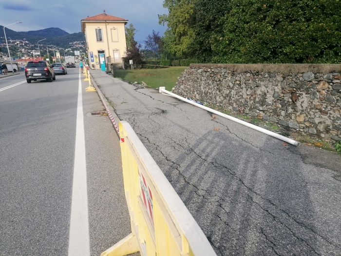 VERBANIA - 19-09-2021 -- È crollato all’interno del parco di Villa Maioni il muro della biblioteca di Verbania. Oggi, dopo una notte di piogge intense e di maltempo, un tratto lungo una ventina di metri che separa la villa dalla statale 34 è ceduto di schianto. Sul posto sono intervenuti i vigili del fuoco, la polizia locale e i tecnici comunali. Non ci sono stati feriti. L’area è transennata.