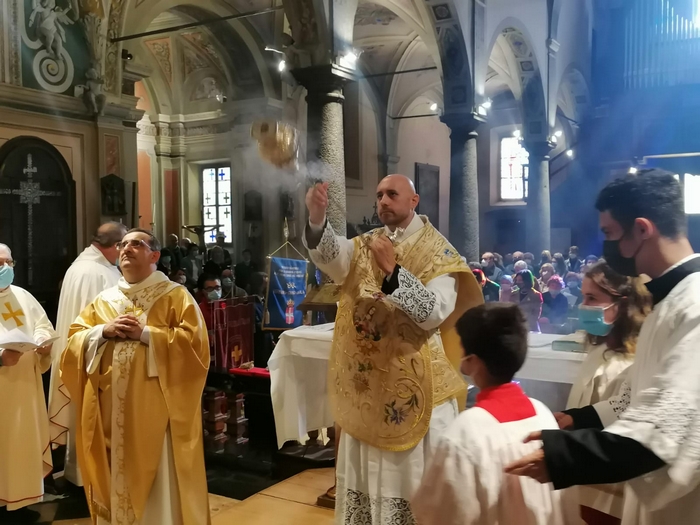 MERGOZZO - 13-10-2021 -- Mergozzo ha dato il benvenuto al suo nuovo parroco. Domenica, nella chiesa di Santa Maria Assunta, s’è ufficialmente insediato don Massimiliano Maragno. Quarant’anni, originario della collina verbanese, è stato ordinato sacerdote nel 2008. Nei primi anni della sua missione è stato agli oratori di Grignasco e di Cannobio. Nel borgo dell’alto Verbano è stato per nove anni coadiutore. Nel 2019 è stato trasferito a Novara, alla parrocchia della Madonna Pellegrina, che ha lasciato per Mergozzo, dove ha preso il posto di don Adriano Miazza.