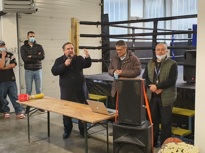 GRAVELLONA T. - 02-11-2021 -- In alto, lungo la parete d’ingresso e al di sopra della lunga fila di specchi, c’è l’effigie di Matteo Del Grosso. Il suo volto in bianco e nero, ritratto da un writer locale, sembra vegliare sulla nuova palestra che la Boxe Verbania ha inaugurato ieri a Gravellona Toce. Alla vigilia del 50° – il sodalizio è nato nel 1972, ed è l’undicesimo più longevo d’Italia in questa disciplina, come ha ricordato il presidente Beniamino Ricca – la società che oggi si fregia del titolo italiano di Ivan Zucco è stata costretta a traslocare. L’ha fatto per necessità (“gli spazi in viale Azari non ci bastano più perché, fortunatamente, stiamo crescendo”), per ampliare il suo bacino d’utenza (“qui siamo più baricentrici alla provincia”), ma anche perché a Verbania, negli ultimi anni, non ha trovato quegli appoggi e sostegni che le hanno permesso di trovare una palestra adeguata.