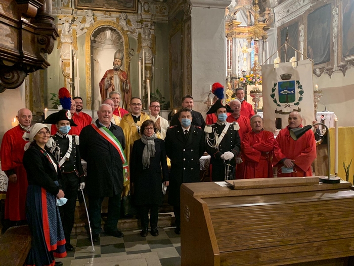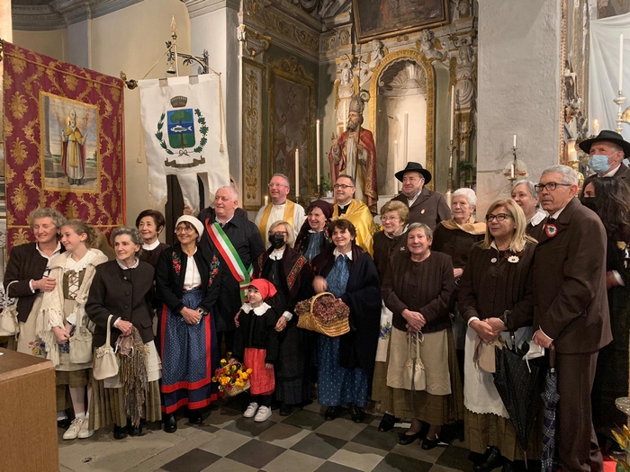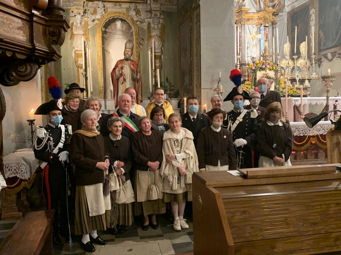 COSSOGNO - 15-11-2021 -- C’era tutta la comunità cossognese. Il sindaco con la fascia tricolore, i carabinieri in alta uniforme, i gonfaloni delle associazioni e tanti paesani che non hanno voluto mancare, non solo alla festa del patrono San Brizio, ma anche alla prima celebrazione del nuovo parroco, don Marco Masoni. In onore del religioso che, nelle scorse settimane, ha preso possesso della parrocchia di Cossogno ma anche di quelle di Trobaso e Renco, era presente in costume il gruppo folk dei Rigadin di Ornavasso. Nel programma di San Brizio, oltre alla cerimonia religiosa con la processione al cimitero, anche un momento culturale con l’inaugurazione del restaurato affresco che da 500 anni campeggia all’esterno di un’abitazione di via solferino, in centro paese. “O pellegrin che passi” è il titolo del volume storico, presentato ieri, che ripercorre la storia dell’affresco e del suo restauro.