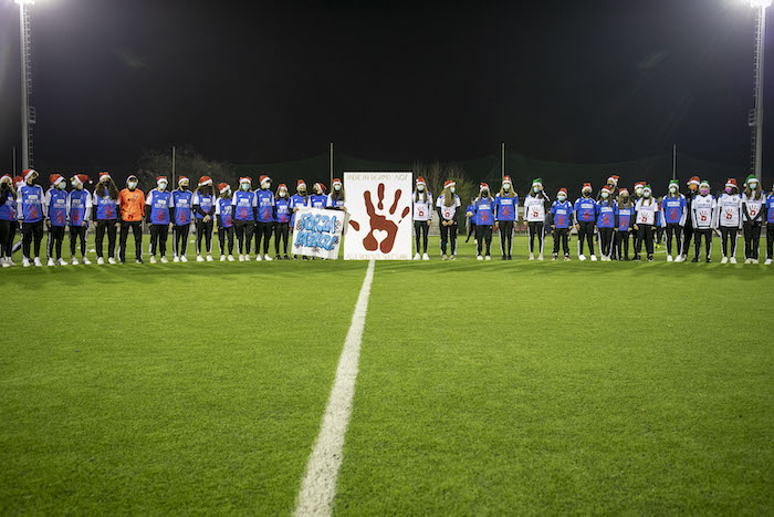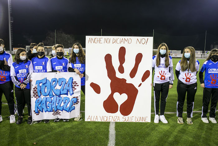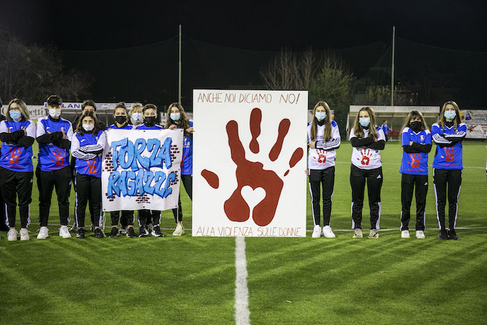 BAVENO - 23-12-2021 - Una grande mano rossa con un cuore nel centro, compare sulle maglie delle due squadre femminili di calcio dell'ASD Baveno (under 17 e under 15) a simboleggiare la lotta contro la violenza sulle donne. Ieri la presentazione: "“L’idea è nata durante lo studio delle nuove grafiche. Le nostre ragazze giocano su campi importanti, in campionati di rilievo, e abbiamo ritenuto opportuno e fondamentale dimostrare il sostegno e la responsabilità anche di comunità come la nostra verso un tema così delicato e a cui raramente viene data la giusta evidenza, soprattutto nell’ambito sportivo”, ha dichiarato Massimo Zacchera.