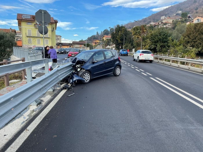 VERBANIA - 02-01-2022 -- Nessun danno fisico, ma l’auto completamente distrutta, così come il guardrail. È questo il bilancio dell’incidente stradale occorso stamane sulla statale 34 del Lago Maggiore, nel territorio di Verbania. In corso Nazioni Unite, in direzione Fondotoce-Intra, la Mercedes classe A condotta da una donna di 89 anni, con accanto la figlia, superato il nuovo parcheggio contiguo alla Casa del popolo di Suna, ha urtato il marciapiede per incastrarsi nella cuspide del guardrail che protegge l’inizio del marciapiede. La monovolume s’è letteralmente accartocciata contro la barriera di metallo. Sul posto sono intervenuti la polizia locale e i vigili del fuoco, che hanno messo in sicurezza l’area e anche il guardrail, notevolmente danneggiato.