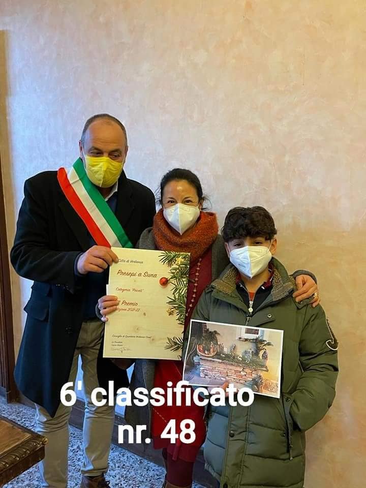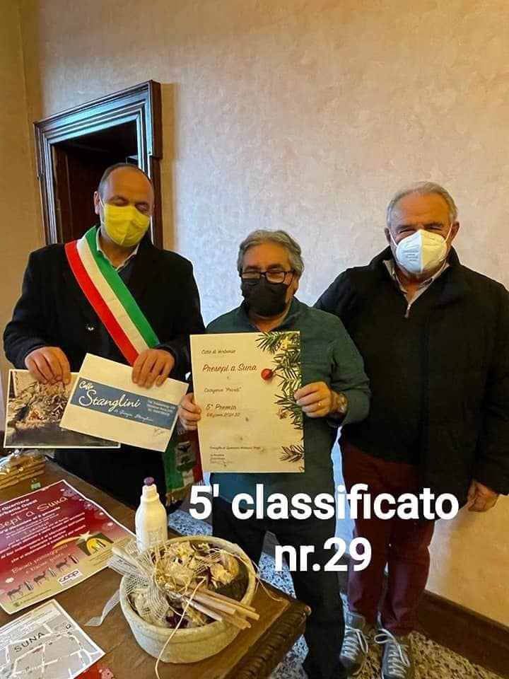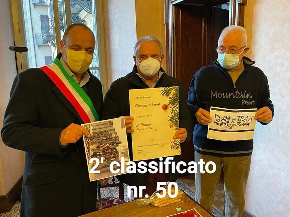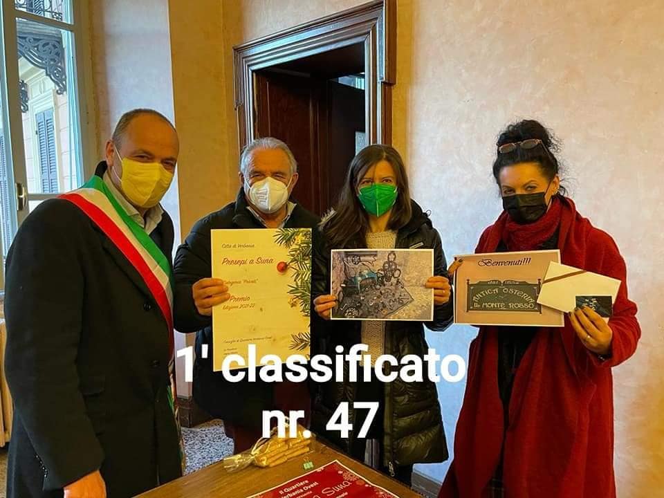 VERBANIA - 17-01-2022 -- Era stata creata con pezzi di ricambio di una moto l'opera vincitrice della quinta edizione di "Presepi per Suna", concorso indetto dal Quartiere Ovest che anima la frazione verbanese con decine di lavori (quest'anno 56) realizzati da privati cittadini ma anche da scuole e associazioni tra stradine, cortili, giardini, angoli caratteristici. Realizzato da Giovanni Gasperini con la moglie Daniela, l'originale presepe è stato premiato dalla giuria proprio per la sua particolarità dove la grotta della Natività era una latta e le candele della moto, pecore e pastori. Giovedì scorso a Palazzo di Città la premiazione, la classifica finale è stata determinata dalla somme dei voti ottenuti dal pubblico (chiamato come sempre ad esprimere il proprio parere) e dalla giuria composta quest'anno da: Annalisa Tantignoni, Paolo Giacomello, Emanuela Carniel, Romina Borgotti e dall'assessore al Commercio Giorgio Comoli.