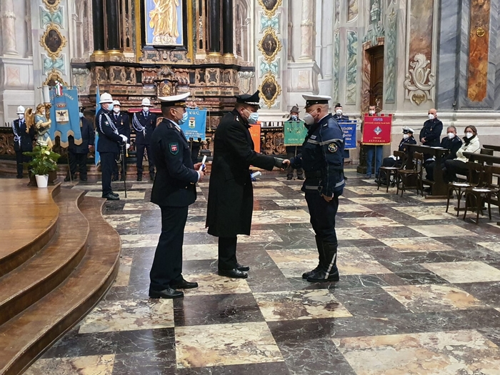 VERBANIA - 20-01-2022 -- Sono sei, destinati a nove tra donne e uomini, gli encomi consegnati oggi a Verbania, durante la celebrazione di San Sebastiano, patrono della polizia locale. Nella basilica di San Vittore, al termine della messa presieduta dal prevosto don Costantino Manea, alla presenza delle massime autorità provinciali, le hanno consegnate i comandanti dei corpi interessati.