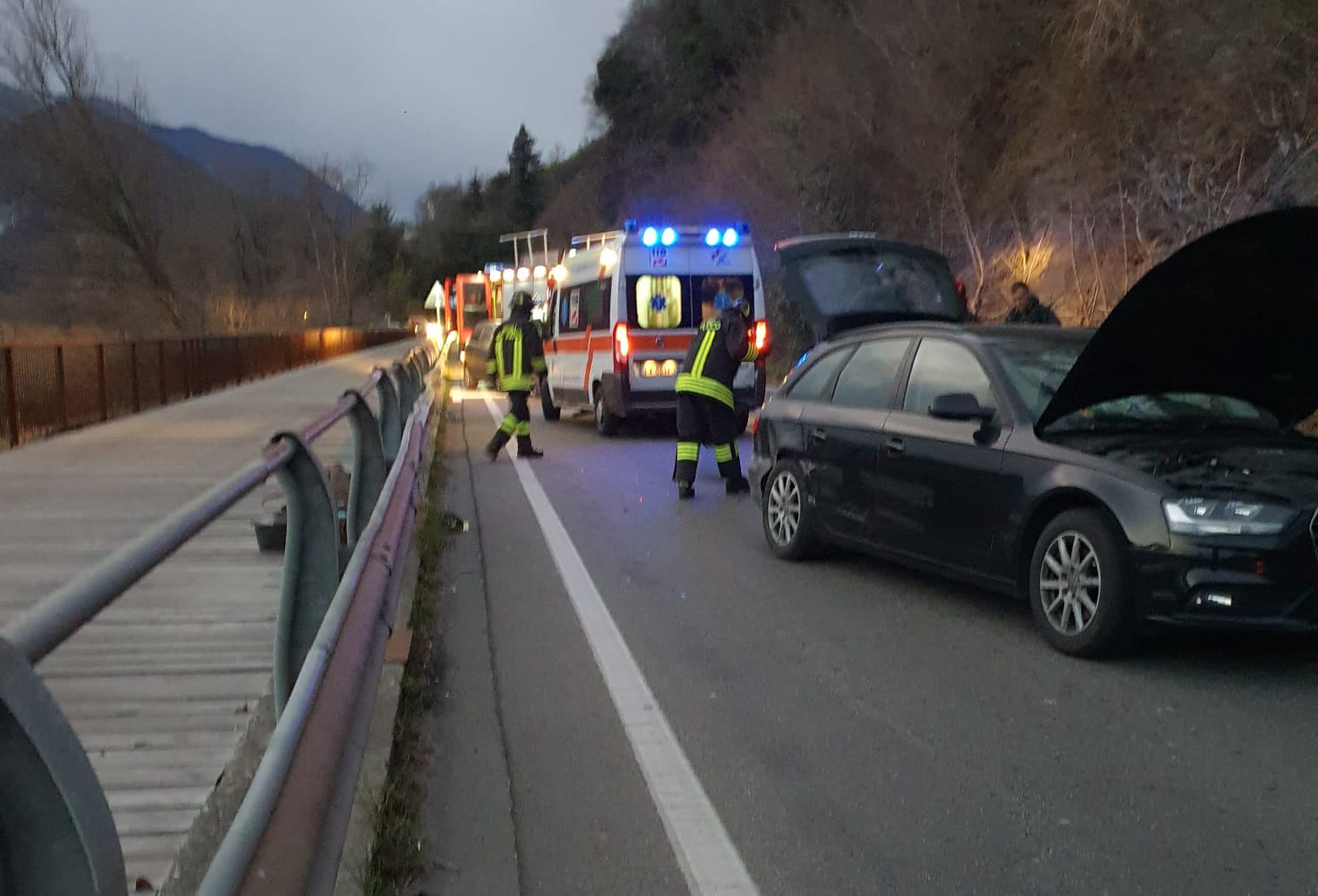 VERBANIA - 21-02-2022 -- Traffico in tilt a Foondotoce, in zona San Carlo, per un frontale, avvenuto intorno alle 17.50, tra un'Audi, una Mitsubishi e una Y. Le auto si sarebbero scontrate e da lì sarebbe partita una carambola che ha coinvolto anche la terza vettura. Ci sono feriti lievi, le auto, invece, sono andate semidistrutte. Sul posto Polstrada e 118, la strda è stata liberata dopo circa un'ora.