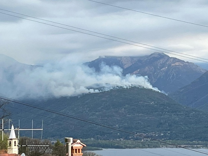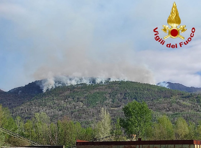 SAN BERNARDINO V. - 17-04-2022 -- Sono due i fronti aperti dell'incendio boschivo che, da ieri, ha ripreso vigore a San Bernardino Verbano. Le fiamme partite dalla zona contigua alla strada provinciale che porta a Cicogna si sono dirette, sia verso Rovegro, sia in alto in direzione dell'Alpe Ompio. Il nucleo abitato di Rovegro, frazione di San Bernardino Verbano, è minacciato dal fuoco contro il quale il personale presente -vigili del fuoco e Aib regionali- ha lavorato tutta la notte proprio per evitare che raggiungesse le abitazioni. In basso la situazione è migliore rispetto alla vetta. Le fiamme hanno oltrepassato l'Alpe Ompio e raggiunto il versante che scende verso Mergozzo.