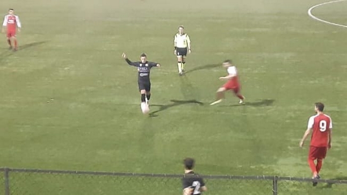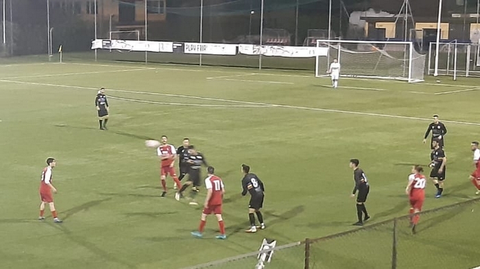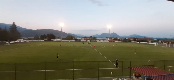 Al 10' cross da sinistra dei locali, tiro al volo di Romano che però si perde sul fondo. Dieci minuti più tardi punizione dalla distanza per la squadra di Molle, batte Austoni con un gran tiro che colpisce l'incrocio dei pali e poi termina fuori.