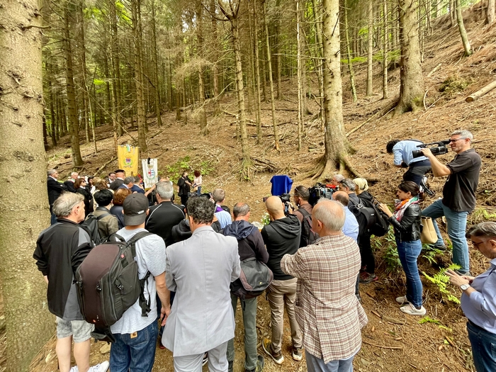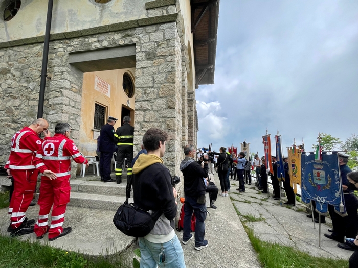 STRESA - 24-05-2022 -- Dolore, commozione, lacrime e rabbia. Doveva essere una cerimonia ristretta, per pochi. Istituzioni, soccorritori e parenti delle 14 vittime del disastro del Mottarone che, il 23 maggio del 2021, persero la vita nello schianto della cabina numero 3 della funivia, si sono ritrovati ieri mattina nel bosco della tragedia, dove l’Amministrazione stresiana ha collocato un monumento memoriale. La copiosa presenza di giornalisti ha immortalato l’evento, portando non solo le parole del sindaco Marcella Severino, del presidente della Provincia Alessandro Lana e del governatore del Piemonte Alberto Cirio, ma anche i sentimenti dei parenti presenti, il pianto di chi ha perso i propri cari, ma anche la rabbia di chi si sente abbandonato. Giustizia è la parola d’ordine invocata da tutti e ripresa nell’omelia che don Gianluca Villa ha tenuto più tardi nella piccola chiesa della Madonna della neve, dove è stata celebrata la messa a suffragio.