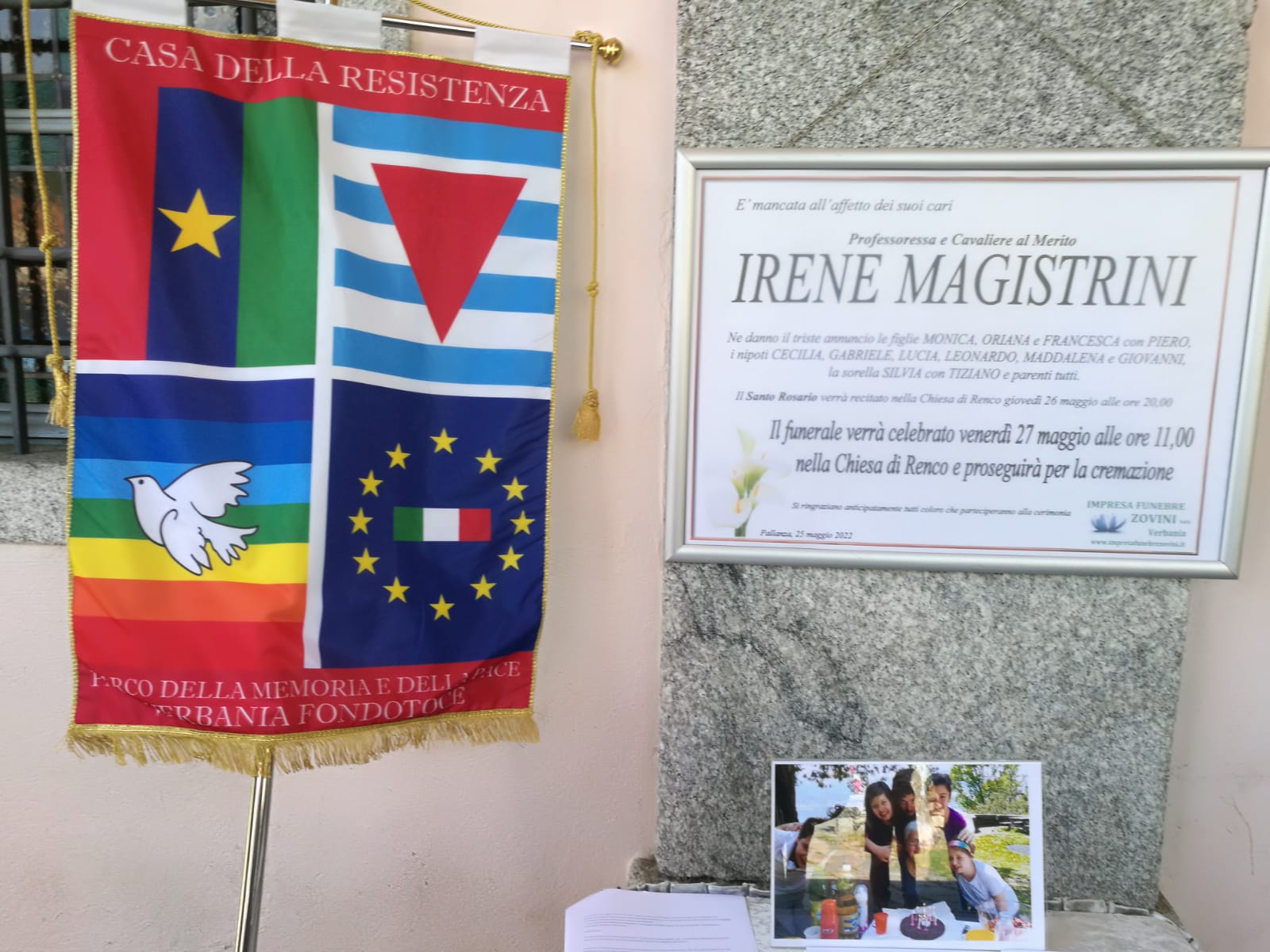 VERBANIA - 27-05-2022 -- Una scia di testimonianze e di ricordi, fatta delle lacrime dei familiari e della stima che tanta parte della città ha voluto manifestare a Irene Magistrini, salutandola per l'ultima volta nella parrocchiale di Renco. La madre, la nonna, l'insegnante, l'amministratrice, la custode dei valori della Resistenza. Sono stati tanti i ruoli che negli 84 anni della sua vita, Irene Magistrini ha ricoperto. A tenere insieme tutto, il valore della persona: "Tenace e gentile, modesta, dotata di un'intelligenza affascinante". Sono le parole dell'ex sindaco Aldo Reschigna, che la volle come assessore nella sua prima giunta. "Con Irene ci siamo sempre trovati, lei come presidente della Casa della Resistenza, io dell'Istituto storico della Resistenza - il racconto di Paolo Cattaneo -. Senza mai divisioni, senza mai spigoli, abbiamo sostenuto insieme il valore della memoria, il sacrificio di quegli uomini e di quelle donne che ci ha donato 77 anni di pace e libertà. Anche negli ultimi tempi in cui appariva affaticata, Irene è rimasta battagliera nella difesa dei valori umani". Valori che erano i suoi capisaldi e ancora negli ultimi tempi, quando non nascondeva il turbamento per la guerra di Ucraina.