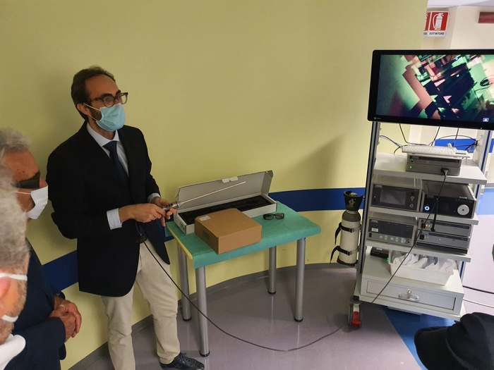 VERBANIA - 03-07-2022 -- La miglior tecnologia per le cure migliori. C’è anche una filosofia aziendale dietro la donazione che la Raffineria metalli cusiana ha effettuato nei giorni scorsi all’ospedale di Verbania. Per Giampiero e Marco Ruga, padre e figlio ai vertici dell’azienda familiare di Verbania che lavora e commercializza alluminio, pensare allo sviluppo tecnologico e alla sostenibilità è un obiettivo concreto ormai da anni. Un obiettivo che ben s’è sposato nella collaborazione, già avviata qualche anno fa, con l’Asl e con l’ospedale del capoluogo. Alla richiesta degli imprenditori di quale strumentazione necessitasse il dipartimento di Chirurgia, la risposta del primario Sandro Zonta è stata esaudita con l’acquisto di una telecamera ad alta definizione 4K con visione tridimensionale, ottica a 30° e visione integrata Nir/Icg.