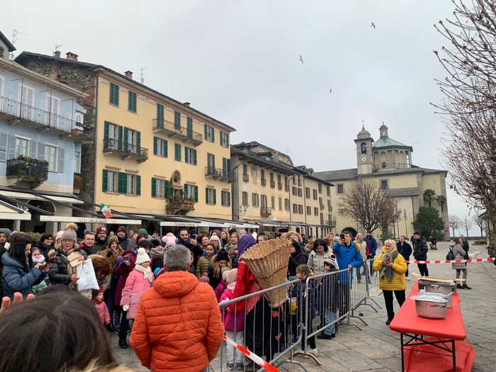 CANNOBIO - 07-01-2023 -- Grande partecipazione, ieri, per la Befana cannobiese, che s’è presentata ai bimbi (e genitori) del borgo dell’alto Verbano in versione… da sbarco. Accompagnata dai vogatori della locale società di canottaggio, la vecchia coi doni è arrivata dal lago, è scesa in piazza e ha raggiunto piazza Vittorio Emanuele III, accolta dal sindaco Gian Maria Minazzi e dall’Amministrazione. L’evento è proseguito con la distribuzione dei dolci e la merenda.