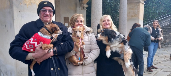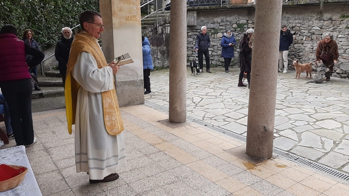 STRESA - 23-01-2023 -- (e.p.) Ieri mattina a Vedasco, frazione di Stresa, è stata celebrata la festa di Sant’Antonio Abate, protettore degli animali. Il parroco don Gianluca Villa, al termine della celebrazione della messa, come da tradizione ha benedetto sul sagrato gli animali, intervenuti con i loro proprietari, tra i quali anche il sindaco Marcella Severino con la sua cagnolina, e l’assessore Carla Gasparro. Infine, per tutti è stato distribuito il pane benedetto. Una tradizione che prosegue da nove anni grazie all’impegno dei frazionisti amanti degli animali.