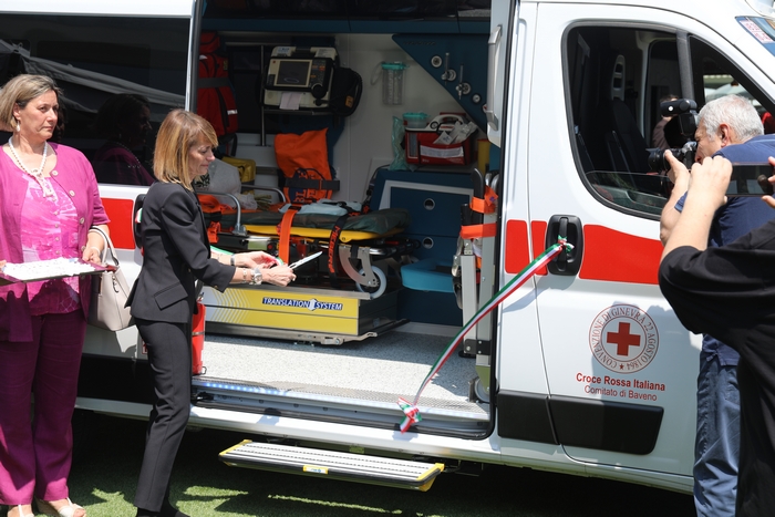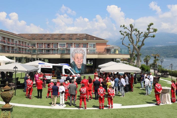 BAVENO - 12-06-2023 -- In ricordo di mamma Margherita. La domenica al Grand hotel Dino di Baveno è stata dedicata alla figura di Margherita Zacchera, mamma degli albergatori Antonio, Massimo, Maria Gabriella e Andrea, scomparsa lo scorso inverno. Figura centrale nel gruppo alberghiero bavenese, che ha vissuto in prima persona e contribuito a far crescere con un impegno quotidiano fatto di presenza fisica e lavoro, a lei è stato dedicato il nuovo giardino con piscina dell’hotel. Ma il suo ricordo è stato portato avanti anche grazie al contributo che la famiglia ha dato alla locale sezione della Croce Rossa nell’acquisto di un’ambulanza che è stata simbolicamente consegnata alla Cri bavenese nella cerimonia tenutasi al grand hotel, alla presenza dei familiari di Margherita, delle autorità e dei volontari.