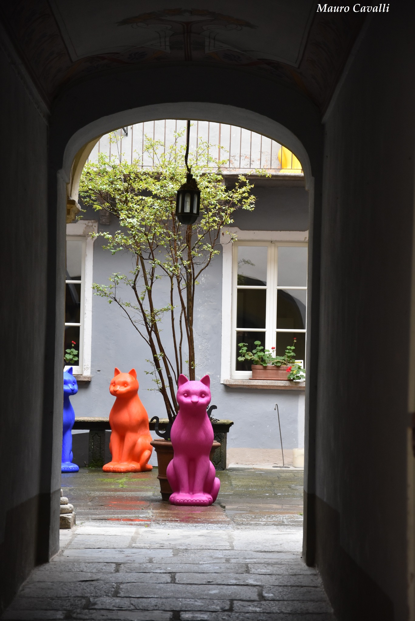 CANNOBIO - 3-5-2024 -- Gli animali giganti di Cracking Art all'assedio di Cannobio. Una colorata fauna (di "sana" plastica riciclata) assedia già da qualche giorno la cittadina lacustre: un coccodrillo a riva, gatti nei cortili, lumache oltre misura sui muretti, lupi nelle aiuole e poi rane, un elefante e tutto il fantasioso bestiario del collettivo artistico le cui installazioni che parlano di ecologia con un sorriso, tanto successo riscuotono nel mondo. “Siamo uomini del presente e vogliamo che il nostro lavoro interpreti le problematiche contemporanee” si legge nel manifesto della Cracking Art, dove la tematica centrale di questo tempo è proprio il rapporto distorto dell'uomo col suo ambiente, ecco che allora la pacifica "invasione" della plastica modellata in forme animali, diventa occasione di riflessione. “Favole urbane” è il titolo dell'installazione che a Cannobio occuperà i suoi luoghi emblematici e poetici fino al 10 ottobre 2024.