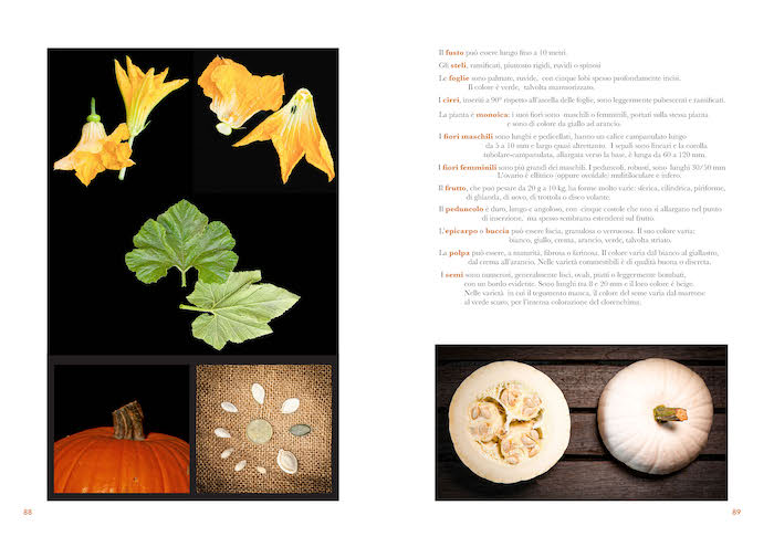 Una delle foto presenti nel libro, riprende una grossa zucca in primo piano e sullo sfondo il paesaggio fiorito di Villa Taranto. È probabilmente questa immagine la sintesi di quello che questi frutti rappresentano: nel regno della natura che diventa bellezza pura, nel giardino botanico nato per deliziare gli sguardi e lo spirito, la creatura dei campi conquista la prima fila. Bella: di una bellezza che non è leziosità, ma è tutta sostanza.