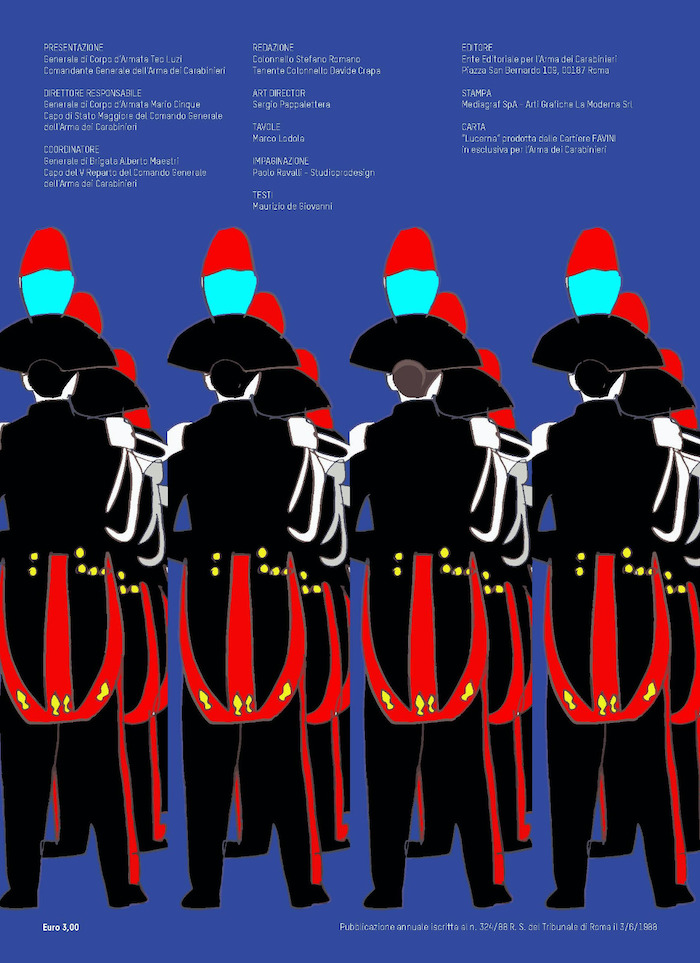 “I Carabinieri e i giovani” è il tema del nuovo Calendario Storico, realizzato con il contributo di celebri personaggi dello scenario artistico-letterario italiano, Marco Lodola e Maurizio de Giovanni; il primo che ha curato la veste grafica dell’opera è considerato un artista poliedrico del Nuovo Futurismo e della Pop Art italiana, mentre il secondo, scrittore di successo, è noto per le collane de “Il Commissario Ricciardi”, “I Bastardi di Pizzofalcone”, “Mina Settembre”.