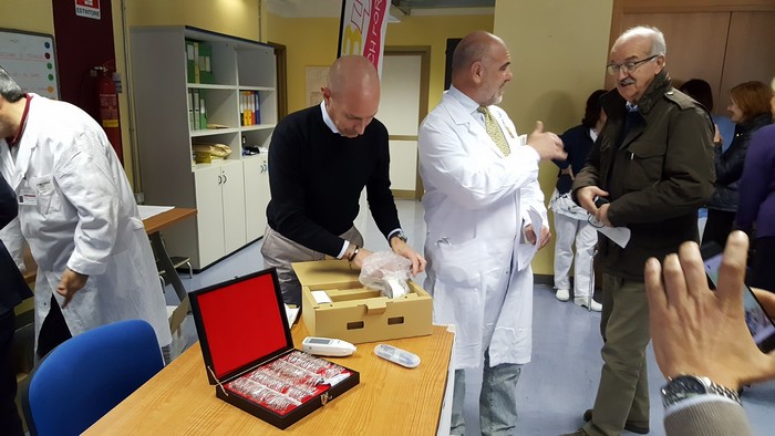 ai bambini. Sono il reparto di Pediatria dell’ospedale “Castelli” di Pallanza e la Croce Rossa di Verbania i destinatari dei doni acquistati con l’evento benefico B4B della scorsa estate. Per il terzo anno consecutivo la piazza San Vittore di Intra s’è trasformata in una succursale di Copacabana, con un campo da beach volley attorniato da tribune e da un punto di spillatura della birra. Sport, musica e divertimento sono stati gli ingredienti che hanno permesso di raccogliere in una settimana 8.617 euro. Il denaro è stato impiegato per acquistare alcune attrezzature che gli organizzatori hanno consegnato oggi. Al reparto di Pediatria diretto dal dottor Andrea Guala è andato un birilubinometro transcutaneo, all’Oculistica rappresentata dalla dottoressa Nicoletta Carboni un set di strumenti pediatrici, e alla Croce Rossa Italia del presidente provinciale Ettore Franzi alcuni zaini pediatrici. Il birilubinometro è uno strumento indispensabile in pediatria perché permette di misurare l’ittero dei neonati senza pungere la pelle e estrarre gocce di sangue. “Funziona con il riflesso della luce sull’epidermide – ha spiegato Guala –. Questo è all’avanguardia perché non richiede manutenzione e permette anche la lettura di chi ha la pelle non caucasica”.