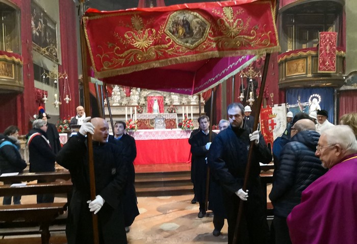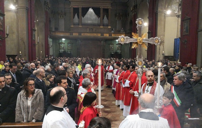 e in tanti, oggi, hanno reso omaggio alle reliquie di Cannobio. Una grande partecipazione, popolare prima ancora che istituzionale, ha accompagnato la celebrazione liturgica dei Lumineri, la processione che dalla collegiata di San Vittore ha portato al Santuario della Pietà di Cannobio le ossa che nel gennaio del 1522 furono ritrovate, insanguinate, nell’osteria di Tommaso Zaccheo, cadute da un quadro raffigurante la Pietà: il corpo di Gesù deposto dalla croce e abbracciato da Maria. A presiedere la cerimonia il vescovo di Novara Franco Giulio Brambilla, che ha esposto le reliquie alla devozione dei fedeli prima di guidare la suggestiva processione – sfuggita agli effetti del maltempo – rischiarata da diecimila lumini. Poi, dopo la messa, tutti a tavola a consumare il piatto della tradizione, le verze e luganighe servite nella mensa della scuola di Cannobio per l’Amministrazione, i suoi ospiti e i cannobiesi prenotati, e nei locali del borgo lacustre.