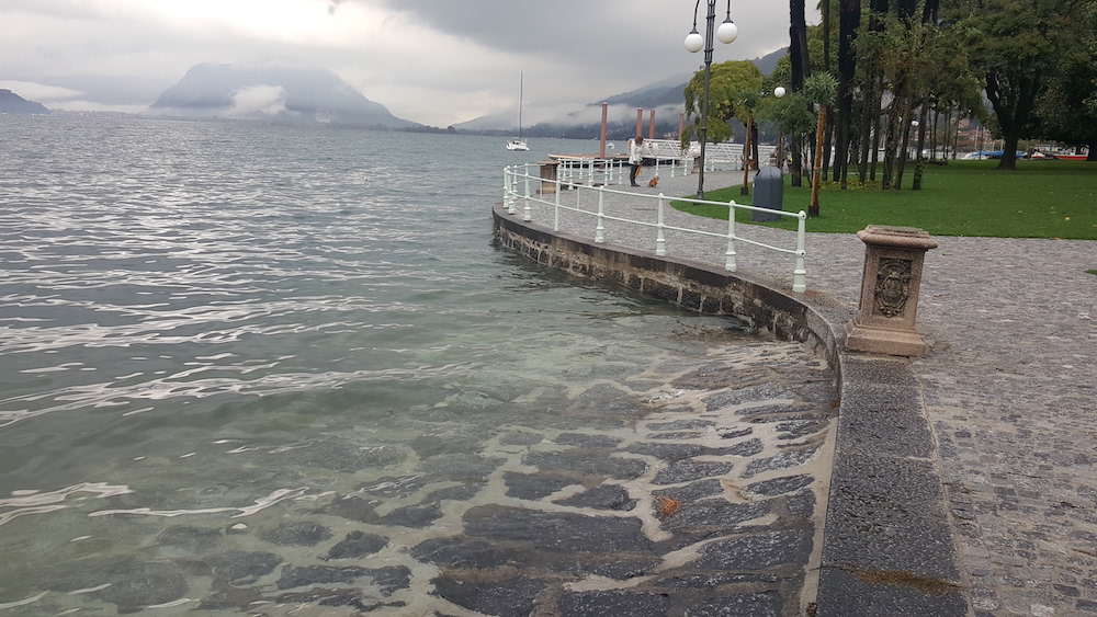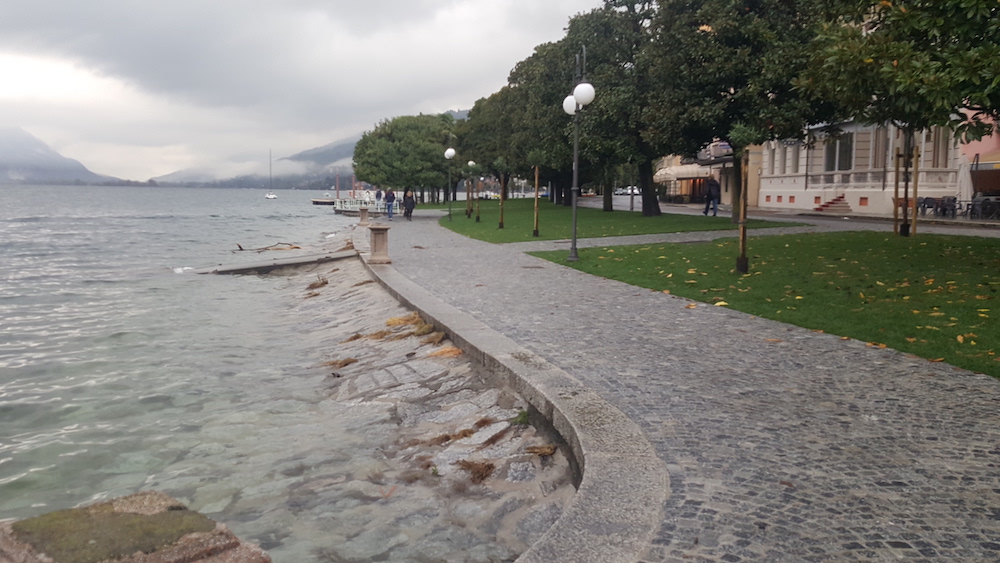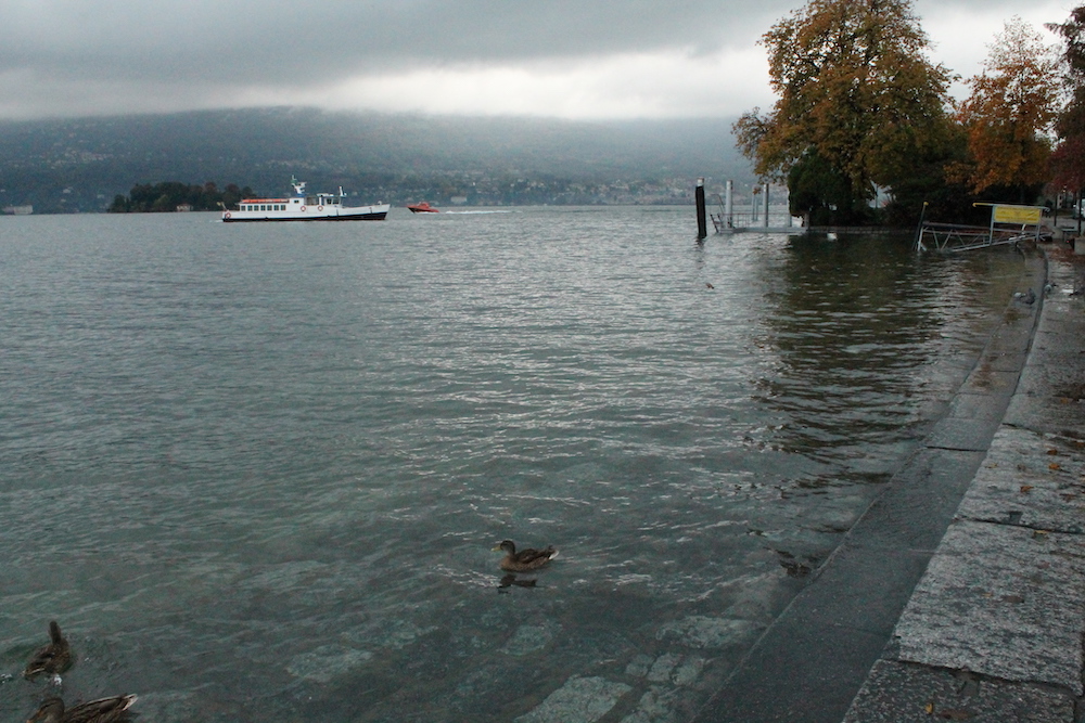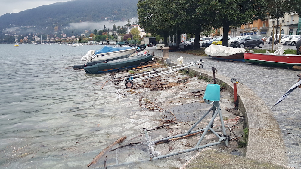 il lago dovrebbe esondare sulla passeggiata di Pallanza, già inondato il porticciolo di Intra. Cresciuto di mezzo metro nelle ultime 24 ore, il Maggiore a Pallanza sfiorava alle ore 18 i 5.30 metri, il primo limite di guardia è a 5 metri, il livello di pericolo a 6. Anche a Sesto Calende, all'idrometro della Miorina, si registrano livelli decisamente da esondazione, con circa 208 centimetri sopra lo zero idrometrico (alle ore 18.30) ed un bilancio tra acqua in entrata e in uscita che parla di 2001.5 metri cubi d'acqua al secondo che entrano nel Maggiore, mentre ne escono "solo" 1044. Il quantitativo di acqua che in questi 10 giorni di maltempo s'è riversato nel lago è impressionante. Sabato 27 ottobre, a Sesto Calende c'era una situazione di secca con un livello negativo (- 23 centimetri) dallo zero idrometrico, oggi si sono superati i due metri. Con queste ondate di maltempo il Maggiore ha guadagnato due metri e mezzo, se si considera (il calcolo è del Consorzio del Ticino) che ad ogni centimetro corrispondono 2 miliardi e cento milioni di litri d'acqua, il risultato è una cifra impronunciabile.