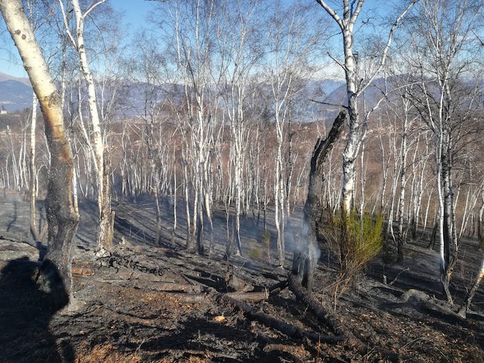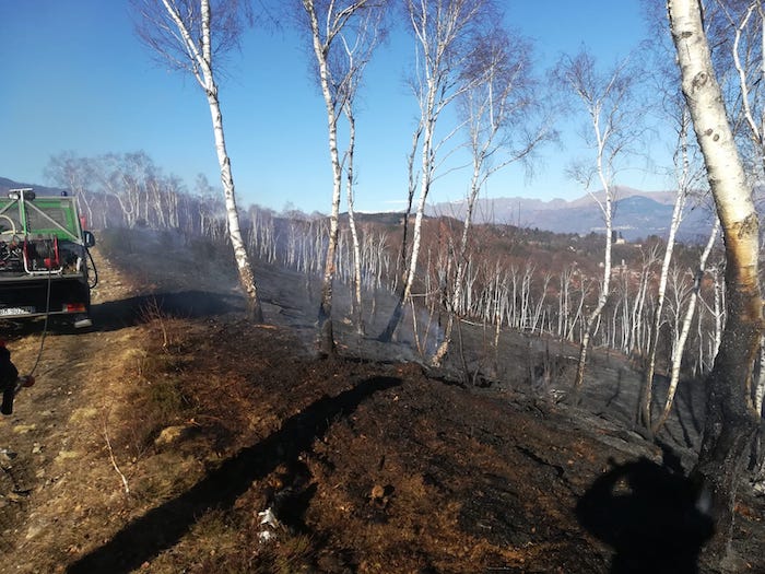 BROVELLO CARPUGNINO - 03.01.2019 - I Carabinieri forestali hanno ben pochi dubbi: è d'origine dolosa l'incendio che da questa mattina divampa all'Alpe Scincina, nel territorio di Brovello Carpugnino. In fiamme, almeno un ettaro di territorio, compreso un bosco di faggio e betulle. Ad alimentare il rogo sono stati il vento e la siccità, ed un folto strato di felci secche nel sottobosco che ha favorito il propagarsi delle fiamme. E' stato un cittadino, a passeggio in zona ad allertare i vigili del fuoco. Erano all'incirca le nove di questa mattina, dalle prime ricostruzioni e testimonianze raccolte dai Carabinieri forestali è emersa la presenza di tre distinti punti d’innesco dell’incendio che successivamente sono confluiti in un unico fronte compatto del fuoco. La dinamica d’avvio delle fiamme porta quindi a ritenere che l’incendio abbia una matrice umana dolosa, pertanto sono in corso indagini per individuare il responsabile. Per le operazioni di spegnimento, sul posto volontari A.I.B. e Vigili del Fuoco.