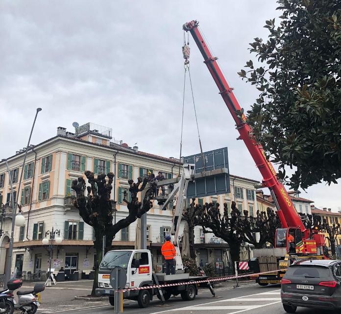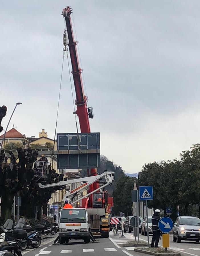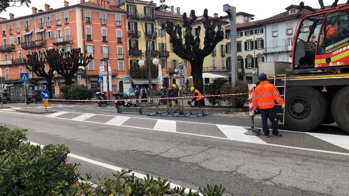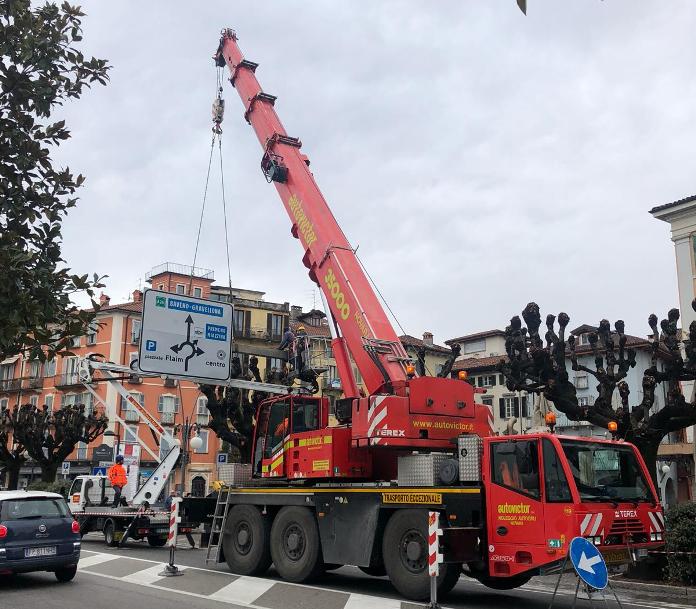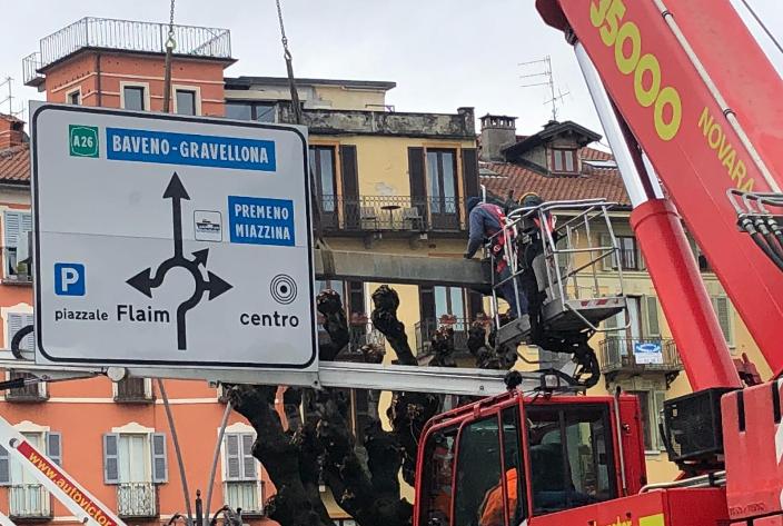 e l’autogrù in azione. Chi s’è trovato stamane a transitare in corso Mameli, lungo il tratto di statale che attraversa il centro storico di Intra, s’è trovato davanti ai vigili urbani che, all’altezza del palazzo delle Beccherie, regolavano il traffico mentre alcuni operai, con una gru e un camion-cestello, sistemavano il grande cartello stradale che indica la vicina rotonda di piazzale Flaim e le direzioni di marcia che da essa si diramano. Quest’opera di manutenzione, programmata la domenica per non intralciare il traffico che in settimana è più intenso, è l’antipasto delle modifiche alla viabilità che nelle prossime settimane subirà il quartiere Sassonia, dove è imminente l’apertura dei primi cantieri degli interventi previsti nel nuovo piano del traffico di recente licenziato dalla giunta e che riguarderà anche gli attraversamenti di corso Mameli.