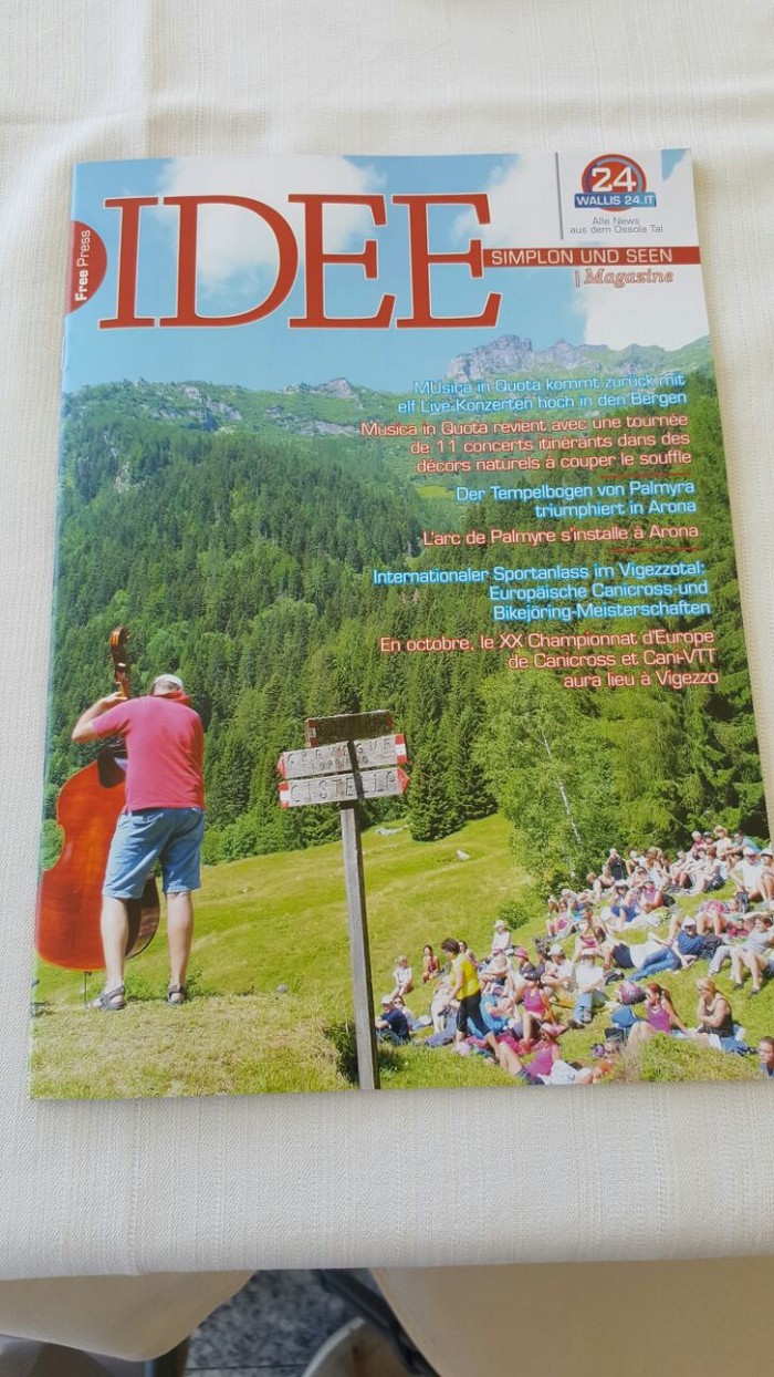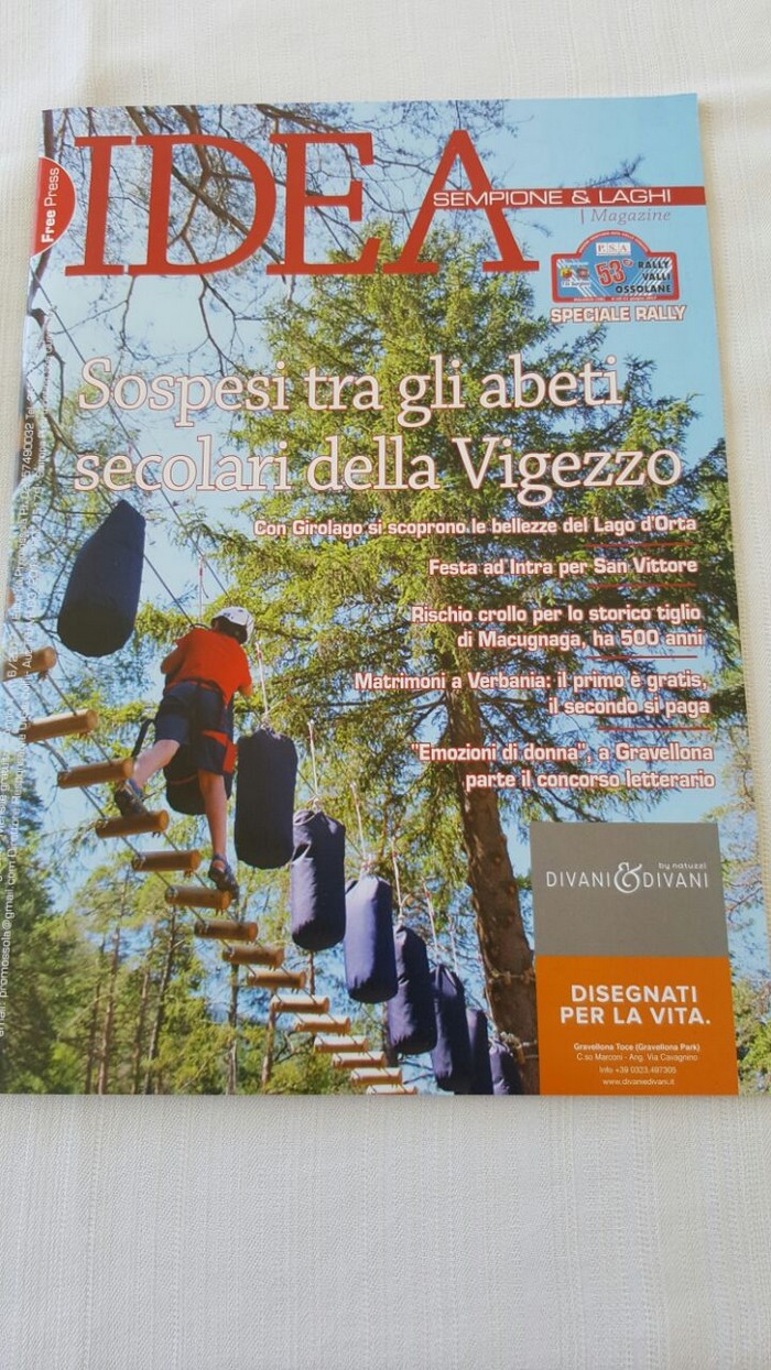 È In distribuzione da oggi l’ultimo numero di Idea, il mensile patinato freepress edito da Promossola e diffuso dal gruppo Vco24. I verbanesi hanno imparato a conoscerlo negli ultimi dodici mesi attraverso i distributori gratuiti di giornali collocati in diversi punti della città. A Intra (piazzale Flaim, piazza Mercato, lungolago, via San Vittore, piazza Ranzoni, via XXV Aprile), Pallanza (di fronte all’ospedale, piazza Gramsci, piazza Garibaldi), Suna (imbarcadero), Fondotoce (farmacia) e Trobaso (piazzetta di via Repubblica) – oltre alla cartolibreria Alberti – i lettori, che hanno decretato il successo dell’iniziativa e che ringraziamo per l’attenzione, hanno potuto prelevare una media mensile di 7-8.000 copie di una rivista distribuita anche in Ossola, in Canton Vallese e in Canton Ticino e che è bilingue italiano/tedesco. Nel numero di giugno spazio al Verbano con la bandiera Blu di Cannero e Cannobio e con le celebrazioni della patronale di San Vittore, oltre alla ricostruzione, a Arona, dell’arco di Palmira distrutto dall’Isis.