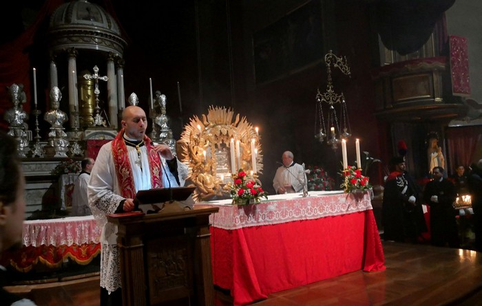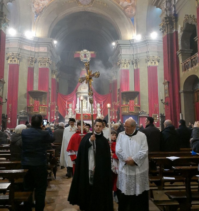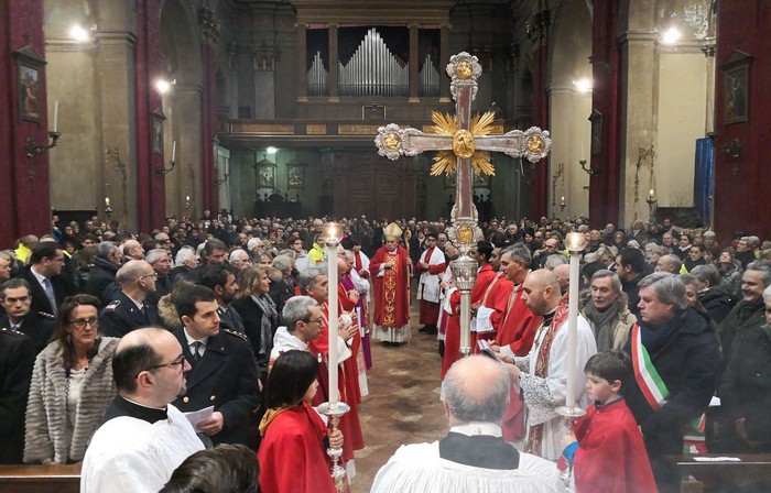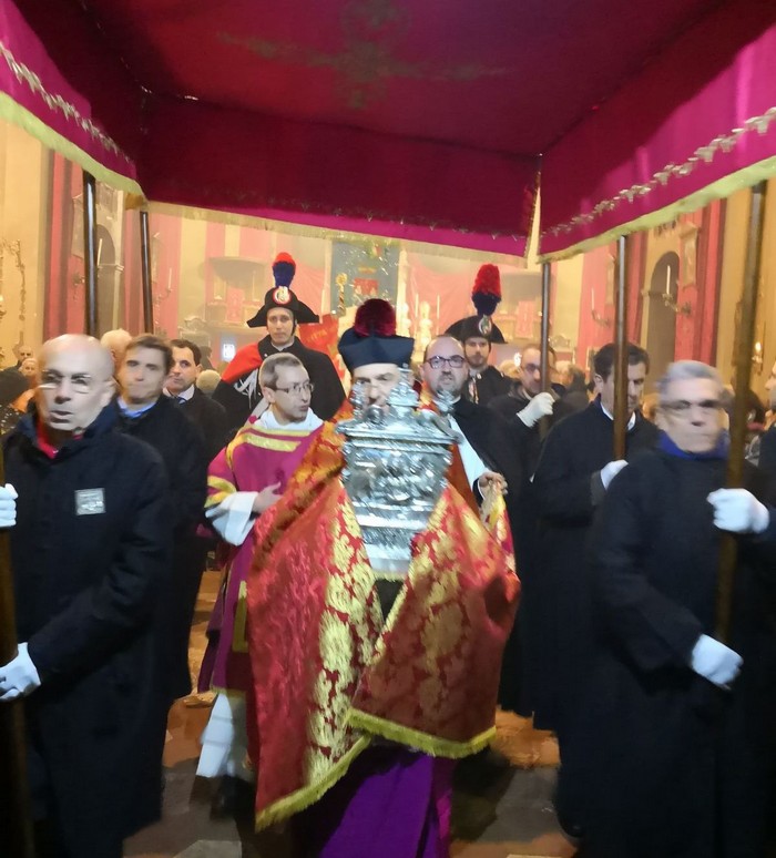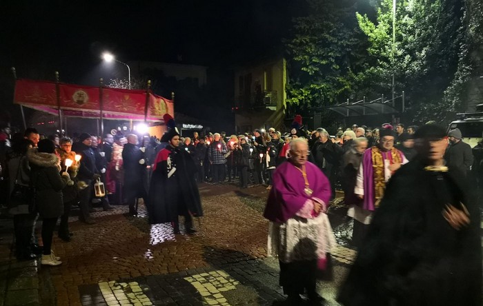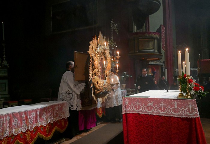 e in tanti, oggi, hanno reso omaggio alle reliquie di Cannobio. Una grande partecipazione, popolare prima ancora che istituzionale, ha accompagnato la celebrazione liturgica dei Lumineri, la processione che dalla collegiata di San Vittore ha portato al Santuario della Pietà di Cannobio le ossa che nel gennaio del 1522 furono ritrovate, insanguinate, nell’osteria di Tommaso Zaccheo, cadute da un quadro raffigurante la Pietà: il corpo di Gesù deposto dalla croce e abbracciato da Maria. A presiedere la cerimonia il vescovo di Novara Franco Giulio Brambilla, che ha esposto le reliquie alla devozione dei fedeli prima di guidare la suggestiva processione – sfuggita agli effetti del maltempo – rischiarata da diecimila lumini. Poi, dopo la messa, tutti a tavola a consumare il piatto della tradizione, le verze e luganighe servite nella mensa della scuola di Cannobio per l’Amministrazione, i suoi ospiti e i cannobiesi prenotati, e nei locali del borgo lacustre.