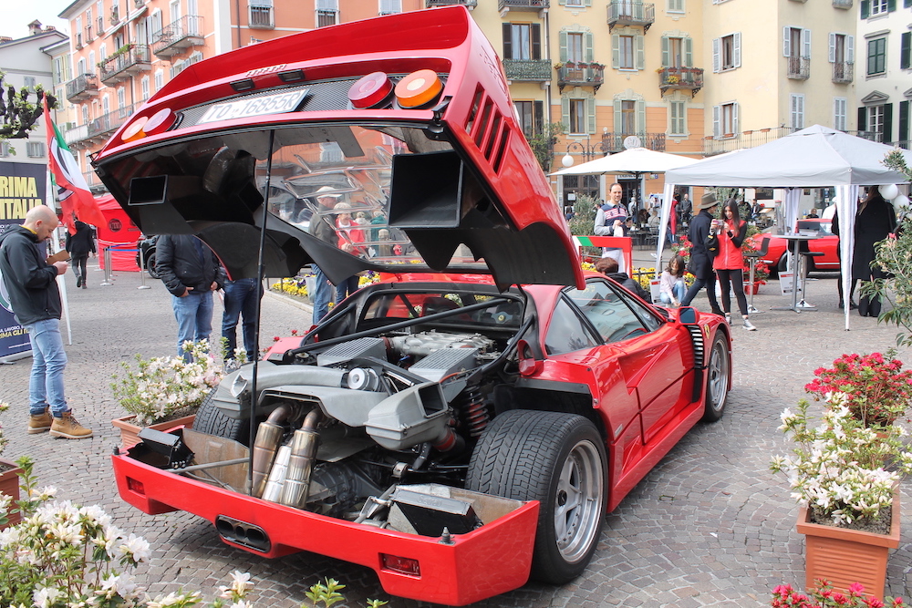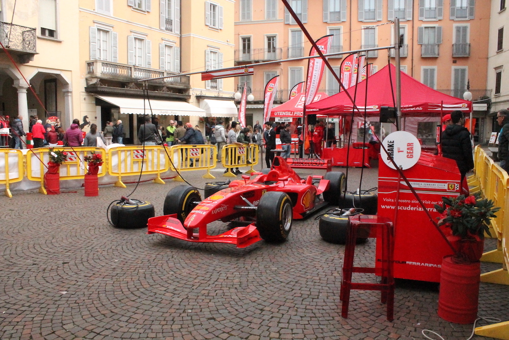 VERBANIA - 13.04.2019 - La giornata uggiosa non ha virato a pioggia, e tanto è bastato che il centro di Intra si riempisse di curiosi e appassionati della "rossa" più rombante del mondo, lungo un percorso che da piazza Ranzoni a San Vittore ancora per tutto il pomeriggio offrirà alla visione le Ferrari "convocate" in città dal club verbanese e gli appuntamenti collegati all'evento (qui). Ad accogliere i visitatori in piazza Ranzoni, la F40, uno dei modelli iconici della fabbrica di Maranello, nato per celebrare i primi quarant'anni di attività sportiva della casa automobilistica. Ma poco più avanti a catturare sguardi ammirati e selfie, è la riproduzione di un vero e proprio mito, la F2002, l'auto sulla quale Michael Schumacher vise nel 2002 ben 12 gran premi, portando a casa il titolo mondiale. Poco più avanti i simulatori, gettonatissimi da giovanissimi e non, dove nel pomeriggio si svolgeranno le gare i di pittura. E poi una puntata in piazza San Vittore, dove sono in esposizione una ventina di modelli da strada, campionario di mezzo secolo di sogni in rosso.