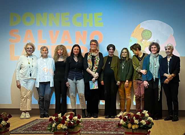 Foto della proclamazione delle "Donne che salvano la Terra": M.C Pasquali è la quinta da sinistra.