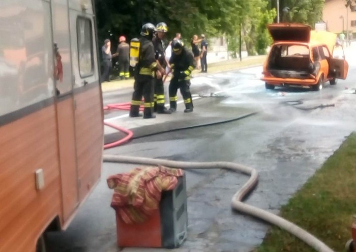 sono usciti indenni, ma il veicolo è stato fortemente danneggiato. Appartiene a una famiglia di turisti tedeschi la Volkswagen 412 wagon (un veicolo d’epoca, che risale a fine anni ’60, inizio ’70) che è andata a fuoco attorno alle 12 di oggi a Cannobio. La familiare, che percorreva la statale con una roulotte al seguito e aveva appena lasciato l’abitato di Cannobio, ha svoltato a destra in via generale Dalla Chiesa, verso il Lido. All’altezza dello stadio il motore ha iniziato a fumare. L’autista l’ha prontamente fermata ed è sceso, chiedendo aiuto. Sul posto sono giunte due squadre dei vigili del fuoco di Verbania che hanno spento il principio d’incendio. Durante l’intervento la polizia municipale ha gestito la viabilità. Sulla statale 34 si sono formate code smaltite poi con il ripristino della viabilità.