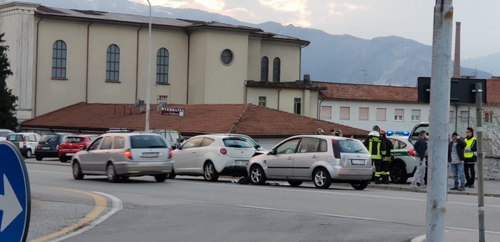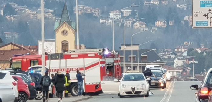 con tre auto coinvolte (ma con perdita di liquidi sull’asfalto) e nove feriti lievi. È accaduto attorno alle 17,45 l’incidente che, all’incrocio tra via Vittorio Veneto (dopo il ponte sul San Bernardino) e via San Bernardino ha creato lunghissime code a Intra e sulla strada per la Svizzera. Tre i veicoli coinvolti: una Renault Clio, un’Alfa Romeo Giulietta e una Ford Fiesta. Nove i feriti, tutti in codice verde. Sul posto sono intervenuti i vigili del fuoco per il lavaggio della strada, la polizia locale per i rilievi e i carroattrezzi per rimuovere i mezzi incidentati.