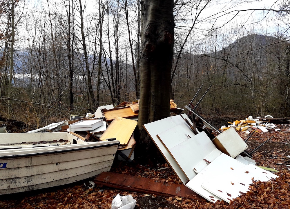 BAVENO – 12-03-2019 - Un campo di mezzo ettaro e le rive del torrente Stronetta usati come discarica. Lo spettacolo che s'è parato alla vista dei carabinieri Forestali, era quello di un immondezzaio in piena regola, abusivo ovviamente: rifiuti di risulta delle operazioni edili, lamiere per tettoie deteriorate, rifiuti ingombranti, secchi di pittura, motocicli ed imbarcazioni fuori uso, sacchi contenenti rifiuti solidi urbani, sanitari frantumati, infissi usurati, frigoriferi e rifiuti derivanti da apparecchiature elettroniche, tagliaerba, pneumatici esausti, detriti di ferro, di plastica, di alluminio e di legno. Il Nucleo investigativo dei CC forestali, congiuntamente alla Stazione Forestale di Gignese, ha individuato la discarica lungo le sponde del rio, a Feriolo quindi un'area sottoposta a vincolo paesaggistico. Ma c'è di più: parte dei rifiuti era stata scaricata direttamente all’interno dello Stronetta, tutti collocati a diretto contatto col terreno ed integralmente esposti alle intemperie.