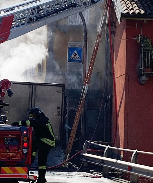 ma ingenti danni. Sono stati attimi di paura quelli vissuti stamane a Feriolo. Dal cassone di un camion di ortofrutta che viaggiava sulla statale 33 in direzione di Stresa e proveniente da Gravellona Toce, s’è levata una nuvola di fumo nero seguita da lingue di fuoco sempre più alte. Sono stati i passanti a indicarlo al conducente, un cittadino straniero, che ha immediatamente accostato ed è sceso dalla cabina, lasciando il camion lì dov’era, cioè a meno di un metro da alcune abitazioni. Le fiamme hanno divorato il veicolo e si sono propagate a due edifici adiacenti. Il primo, che un tempo ospitava un’agenzia di pratiche auto al piano terra e che oggi è vuoto, è stato gravemente danneggiato. L’altro, in cui risiedono due anziani che sono scappati fuori, ha visto intaccato tetto e sottotetto. I primi soccorsi li hanno prestati i titolari e i clienti del vicino bar. Poi sono intervenuti i vigili del fuoco, carabinieri e polizia per gestire il traffico. La statale è stata chiusa diverse ore, con pesanti ripercussioni alla viabilità e code fin all’uscita dello svincolo di Baveno dell’A26. Dopo è stata riaperta a senso unico alternato. Sono in corso le operazioni di rimozione dei detriti (anche internamente, alle spalle degli edifici) e di messa in sicurezza degli impianti elettrici e della rete elettrica da parte di Enel. Nessun ferito. Chi aveva inalato il fumo è stato portato in ospedale per accertamenti ma è stato già dimesso.