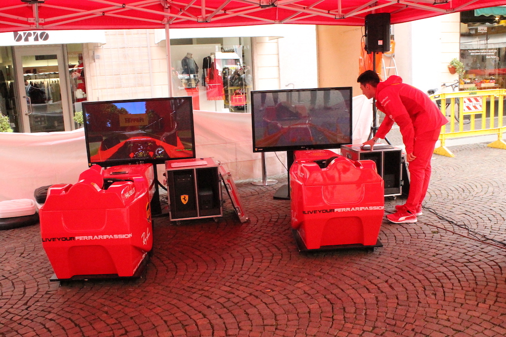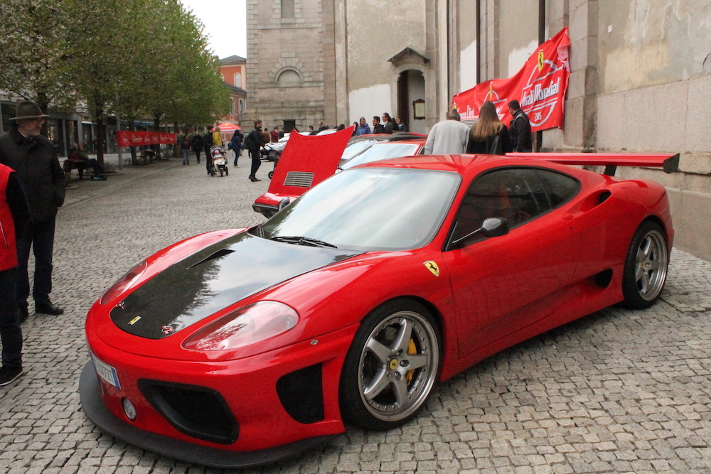 VERBANIA - 13.04.2019 - La giornata uggiosa non ha virato a pioggia, e tanto è bastato che il centro di Intra si riempisse di curiosi e appassionati della "rossa" più rombante del mondo, lungo un percorso che da piazza Ranzoni a San Vittore ancora per tutto il pomeriggio offrirà alla visione le Ferrari "convocate" in città dal club verbanese e gli appuntamenti collegati all'evento (qui). Ad accogliere i visitatori in piazza Ranzoni, la F40, uno dei modelli iconici della fabbrica di Maranello, nato per celebrare i primi quarant'anni di attività sportiva della casa automobilistica. Ma poco più avanti a catturare sguardi ammirati e selfie, è la riproduzione di un vero e proprio mito, la F2002, l'auto sulla quale Michael Schumacher vise nel 2002 ben 12 gran premi, portando a casa il titolo mondiale. Poco più avanti i simulatori, gettonatissimi da giovanissimi e non, dove nel pomeriggio si svolgeranno le gare i di pittura. E poi una puntata in piazza San Vittore, dove sono in esposizione una ventina di modelli da strada, campionario di mezzo secolo di sogni in rosso.