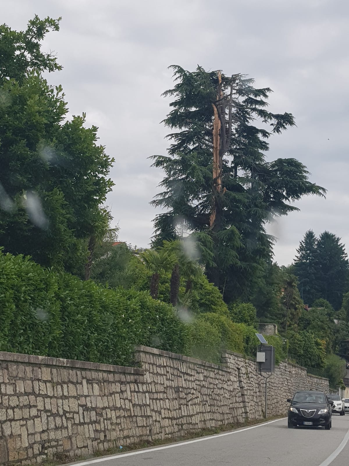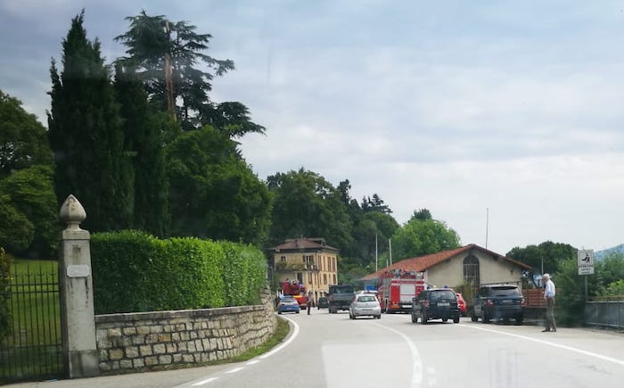 GHIFFA - 14.06.2019 - Traffico in tilt per gran parte della mattinata, da Ghiffa fino al centro di Intra. Colpa di un fulmine che nella notte ha colpito un grosso albero nel parco di Villa Bianchi, a Ghiffa, a ridosso della statale 34. Complesse e durate alcune ore le operazioni di messa in sicurezza, con il taglio dell'albero e delle piante vicine pericolanti, cosa che ha comportato l'istituzione di un senso unico alternato, e la conseguenti code che si sono spinte sino a Intra e, in direzione nord per alcuni chilometri. Problemi di viabilità lenta anche nella zona collinare, che molti hanno scelto come strada alternativa. Sul posto carabinieri, protezione civile di Ghiffa, vigili del fuoco.