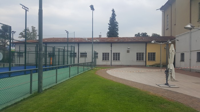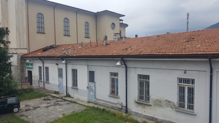 A otto giorni di distanza dal downburst, la tromba d’aria che tanti danni ha fatto a Verbania e sul golfo Borromeo, resta d’attualità la presenza incontrollata di schegge di amianto all’interno del centro sportivo San Francesco. Scoperchiando il tetto della contigua chiesa di Santa Rita, il vento ha mandato un po’ ovunque nelle vicinanze –anche nel parco della biblioteca e in zona teatro– non solo coppi di terracotta, ma anche pezzi delle lastre coibentanti che si trovavano al di sotto della copertura. Sono manufatti in amianto, una parte dei quali è stata rimossa, messa in sicurezza e accantonata nel piazzale (guarda la foto nella gallery) da una ditta specializzata in attesa d’essere portata in discarica. Ma il resto? Le parti più piccole, che potrebbero essere spostate nuovamente dal vento e che, essendo lesionate, possono rilasciare nell’aria fibre di amianto, sono ancora lì dove si sono posate più di una settimana fa, lungo la stecca di edificio parallela alla statale 34 la cui sommità è di poco superiore al piano di campagna. Da allora, da quando la situazione è tornata alla normalità, nelle vicinanze la normale attività prosegue: partite di calcetto, bambini che vanno al parco giochi, il viavai dei clienti al bar-ristorante e nell’albergo. Il tutto a pochissimi metri dal sito “contaminato”, che è stato transennato con una fettuccia di plastica bianco-rossa che può solo tenere lontane le persone ma che non trattiene le eventuali fibre che potrebbero volare via.