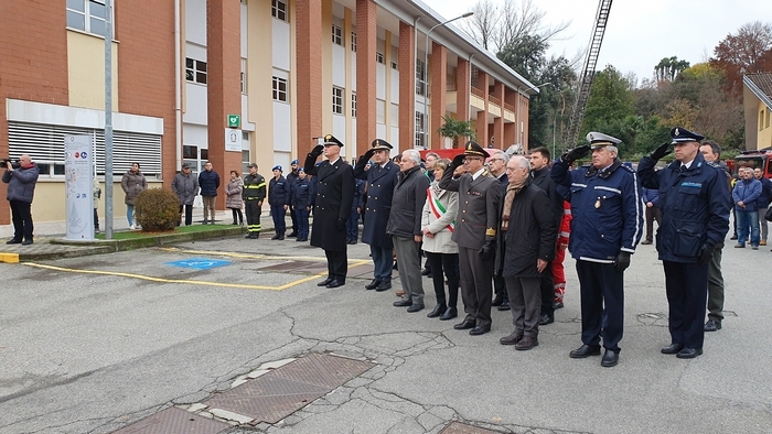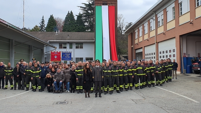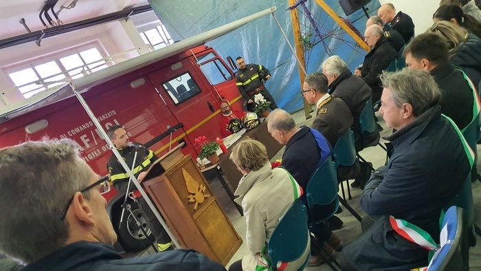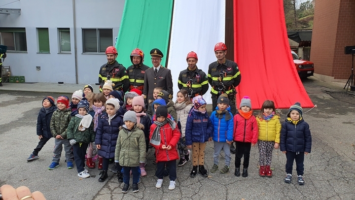 Al termine della cerimonia religiosa, mentre una delegazione del nucleo speleo-alpino-fluviale, calandosi dal castello di manovra hanno srotolato il Tricolore, nel piazzale i bambini della materna hanno vestito per un giorno i panni dei pompieri.