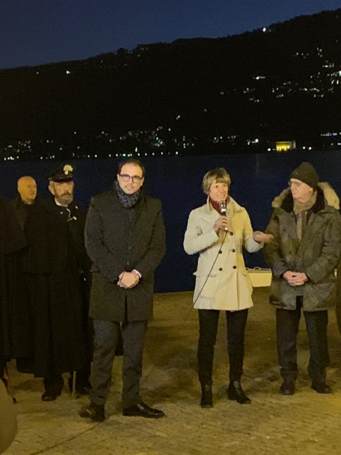 della scuola di canto “La gatta e la volpe”, il brindisi con spumante, cioccolata calda e panettone hanno riscaldato ieri la gelida serata pallanzese facendo da cornice all’accensione dell’albero di Natale di piazza Garibaldi. Un abete alto cinque metri, agghindato con palle e luci bianche e blu -i colori di Azimut, l’agenzia di consulenti finanziari che l’ha sponsorizzato- è stato collocato al centro del lungolago. L’accensione è avvenuta ieri sera alla presenza del sindaco Silvia Marchionini, del questore, dei rappresentanti di carabinieri (c’erano anche due militari in alta uniforme), vigili del fuoco e polizia locale e di circa centocinquanta persone. A fare gli onori di casa sono stati Matteo Marcovicchio, responsabile delle relazioni istituzionali Piemonte di Azimut, e il team manager dell’agenzia di Pallanza, Davide Pingitore. Marcovicchio ha evidenziato la vicinanza della società alla comunità: “abbiamo voluto regalare quest’albero e questa festa a Pallanza, a poca distanza dalla nostra sede, come primo evento di altri che ci vedranno presenti a Verbania”. Una disponibilità ben accolta dal sindaco Marchionini, che da un lato ha elogiato la disponibilità dei privati a finanziare interventi per la collettività, e dall’altro ha bonariamente promesso di bussare presto alla porta dell’agenzia per altre iniziative.